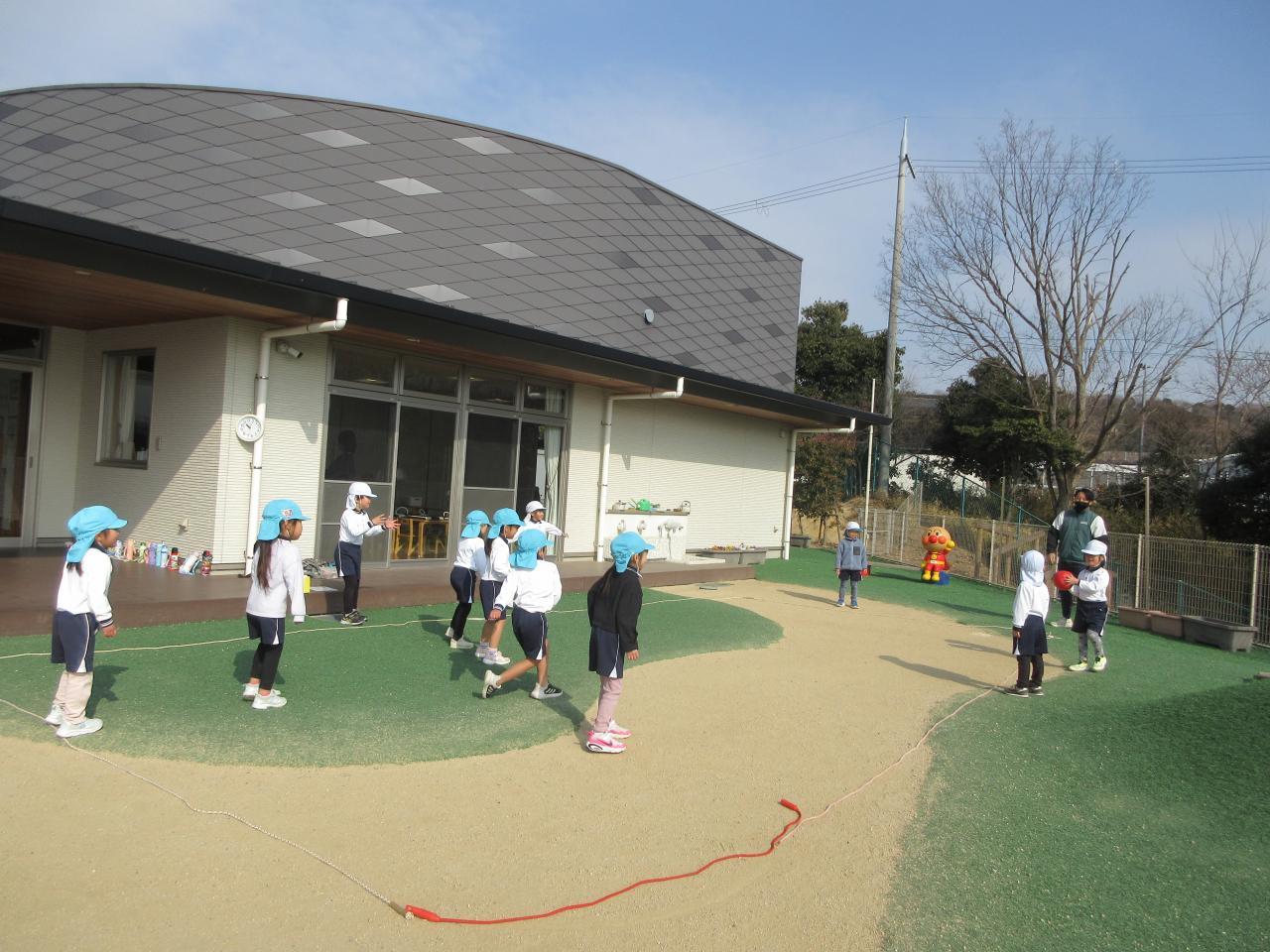 縄跳び、中当てをしました。縄跳びは、お友だちや石元先生にコツを聞きながら技の練習に取り組んでいます。中当てでは、お友だちがボールを投げる反対側に行くことでボールを取れることを教えてもらい、外野にいるお友だちは、ボールの方向を意識して取り組みました。ボールから逃げるのも、投げるのもどんどん上手になってきています。