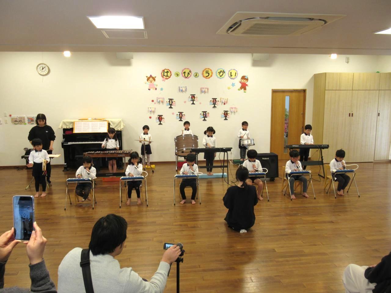 子どもたちは朝から「楽しみ!」「少し緊張するけど頑張る!」と張り切っていました。音楽に合わせて入場して英語で挨拶をし、「The Hokey Pokey」を歌って踊りました。劇「西遊記」は堂々と台詞を言って、踊ったり歌ったり楽しく演じてみんなで協力して劇を作り上げることができました。歌「ツバメ」は間奏で踊ったりのびのびと歌い、合奏は一人ひとりが一生懸命に取り組み、自信をもって演奏することができました。発表会後は「楽しかった!」と嬉しそうにしています。