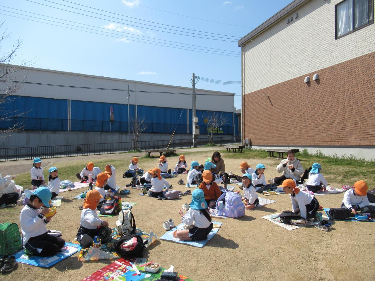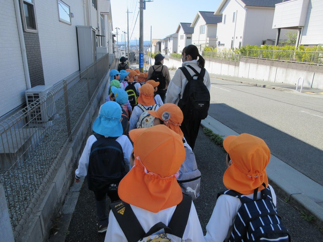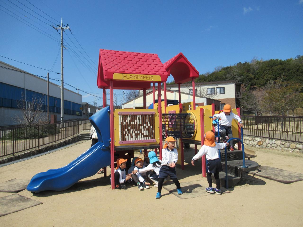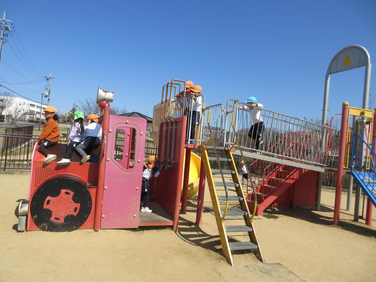 今日は子どもたちが楽しみにしていた園外保育へ行きました。朝からみんなワクワクしていて「早く行きたい!」「お弁当楽しみ!」とお友だち同士でお話していました。公園へ向かうときはさくらんぼ組の子と手を繋ぎお話しをしながら歩きました。公園に着くと2グループに分かれ、遊具で自由に遊びました。滑り台やうんてい、ブランコなど好きな遊具を選んで楽しんでいます。ブランコはみんなで譲りあい、ルールを守って遊ぶことができました。ぶどう組の子がさくらんぼ組の子を遊びに誘う姿もあり、一緒に仲良く遊んでいます。そしてお弁当を食べました。隣の子や先生に「見て!可愛いでしょ!」と言って嬉しそうにお弁当を見せています。みんなで食べるご飯はとても美味しく、楽しい思い出をたくさん作ることができました。帰ってからも「楽しかったね!」と話をする子どもたちでした。