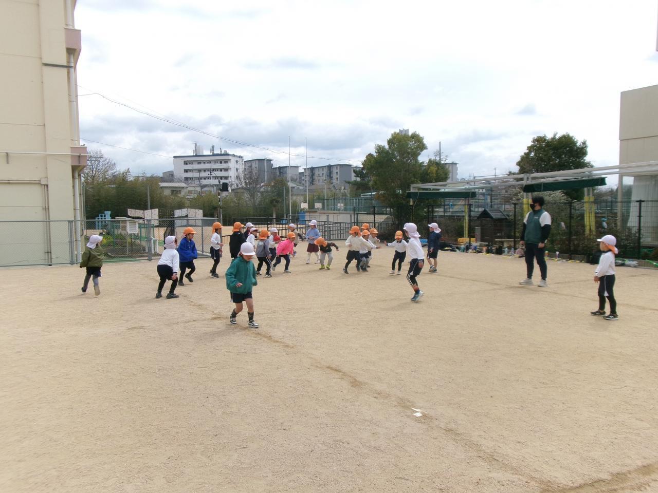 今日は今年度最後の体育指導でした。子どもたちは朝から「絶対シールもらうぞ!」「○○跳び成功させるぞ!」とやる気満々な様子で、自分の目標に向かって一生懸命練習することができています。準備体操の後はジャンプや縄回しの練習をし、後ろ跳びのチャンピオン決めをしました。たくさん跳ぶことができるように進んで挑戦する姿が見られ、自分が跳び終えた後には「がんばれー!」とお友だちを応援する姿も見られました。中当てではボールの投げ方や避け方が上手になり、ゲームもより盛り上がっています。積極的にボールを取りに行ったり、素早くボールから逃げたりしてのびのびと体を動かすことを楽しんでいます。