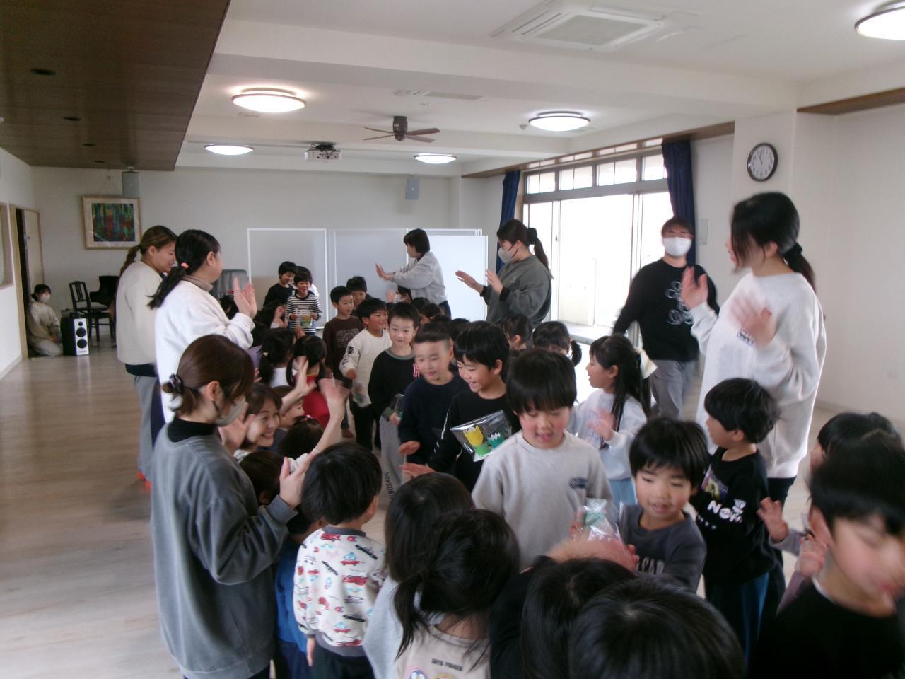 最後はみんなで花道をつくり、「ありがとう」と伝えたり拍手をしながら、らいおん組のお友だちを見送りました。