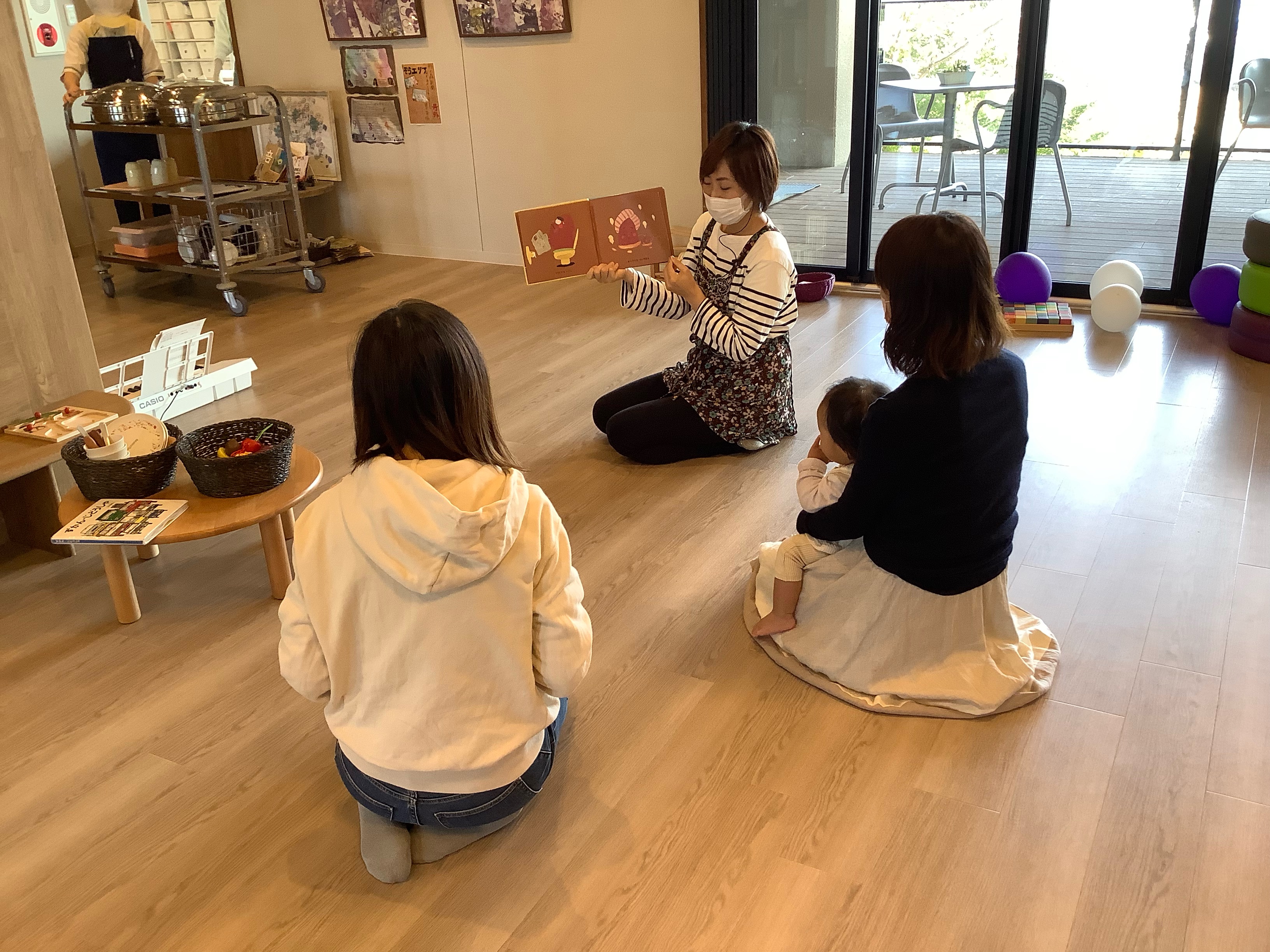 遊んだ後は、季節のうた「どんぐりころころ」「大きなくりの木の下で」「でぶいもちゃん・ちびいもちゃん」を唄ったり、『さつまのおいも』の絵本を見たりもしました🍂