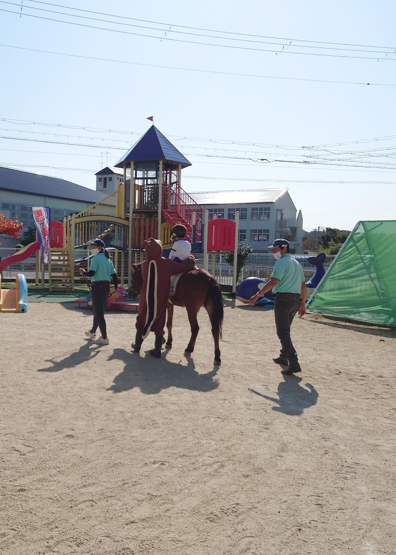 一人ずつヘルメットを被り馬に乗ると恥ずかしそうに手を振っていましたが、馬から降りると口々に「たのしかったー♪」と言っていました😀✨