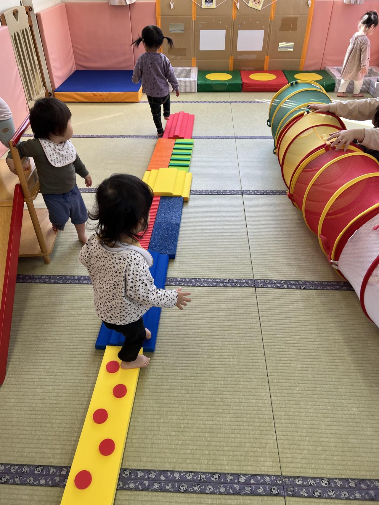 何よりもひよこ組のお友達の成長は、歩けるようになっていること!お壁ぺったんでお座りができるようになっていること!バギーに乗らなくなったこと!みんなで起きて活動していること!たくさんありますね。最近ではかわいいお喋り(喃語)、保育教諭の動きの真似っこも上手になっていますよ。