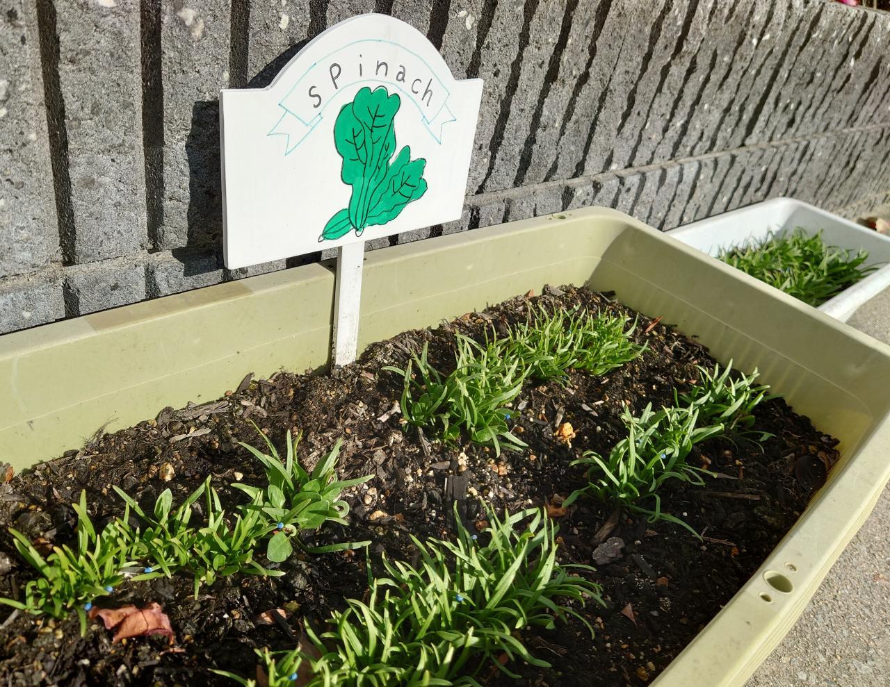 ほうれん草は種から育てました。ほうれん草の青色の種に驚く子どもたちの姿は忘れられないです💦