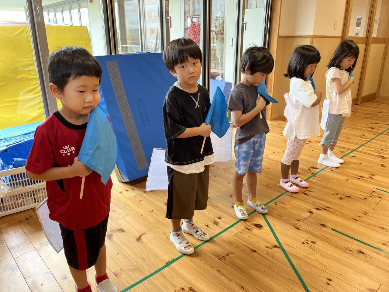 旗を持って音楽が流れるとピシッ!、かっこいい緑名札さんに🏳