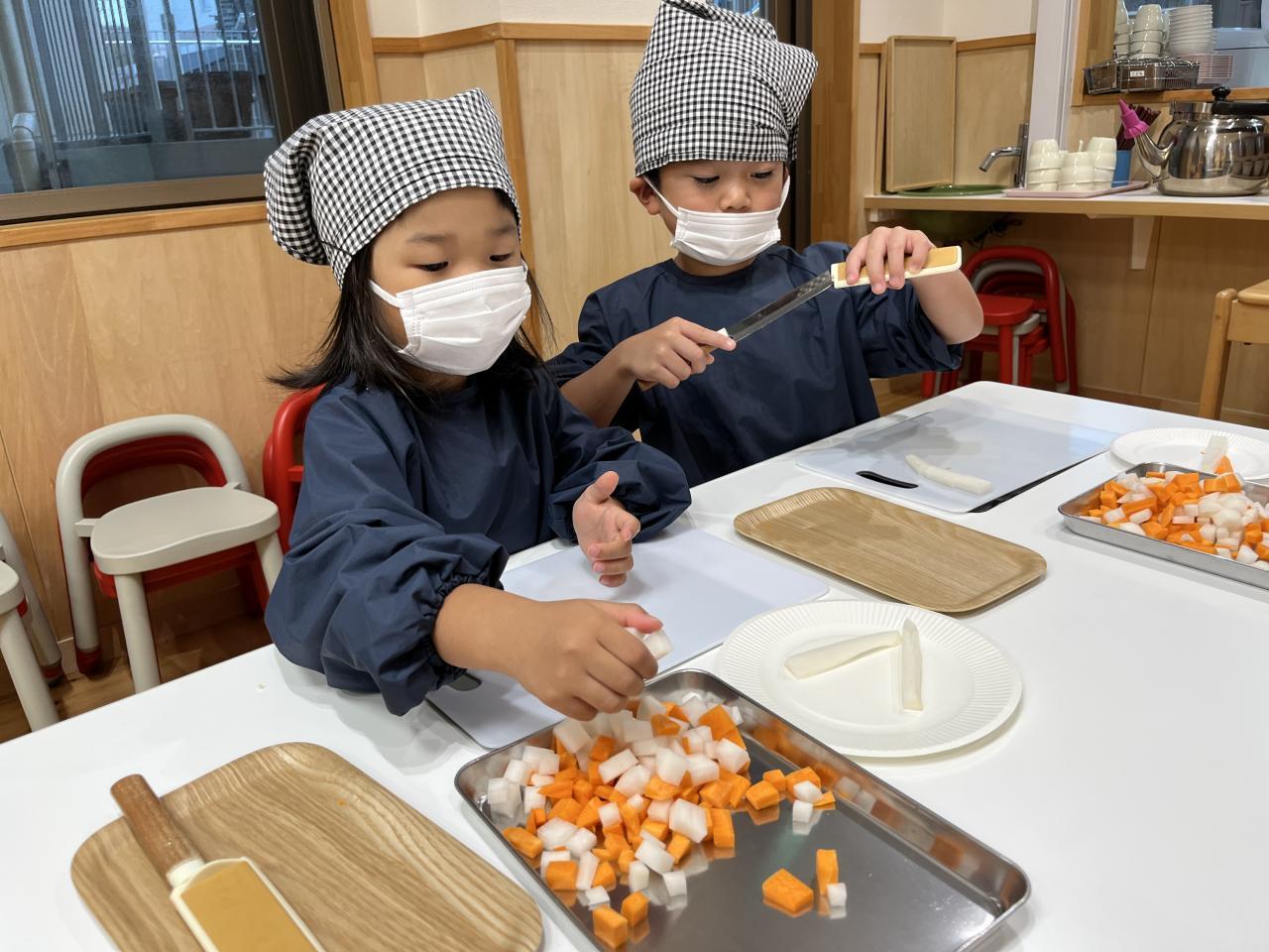 「おりょうりってたいへんだ~!」とびっくりの子ども達でした😊