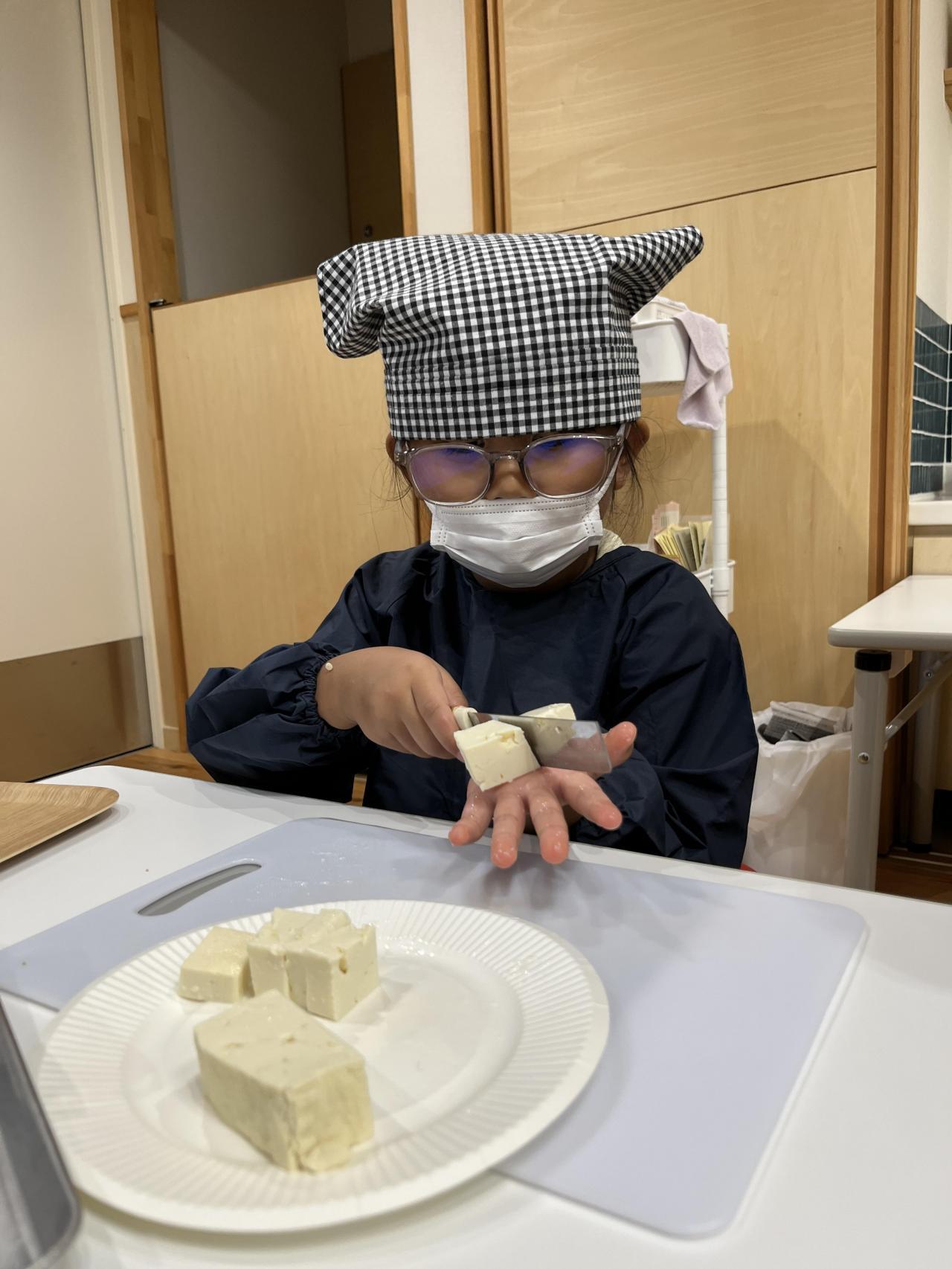 ドキドキしながらも豆腐を優しく持ち、切ることが出来ました✨