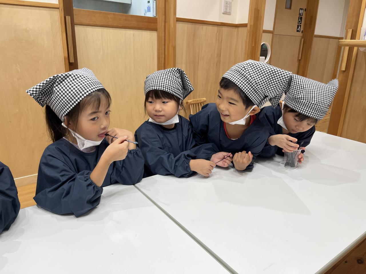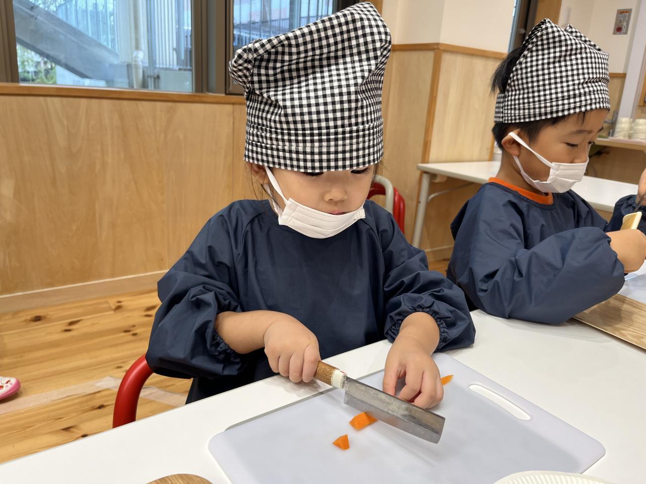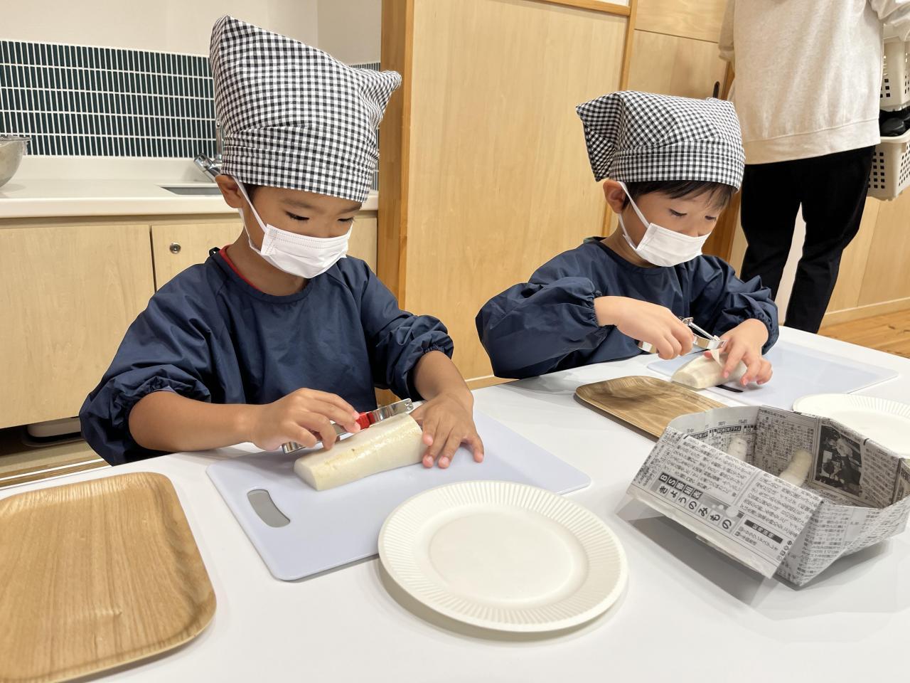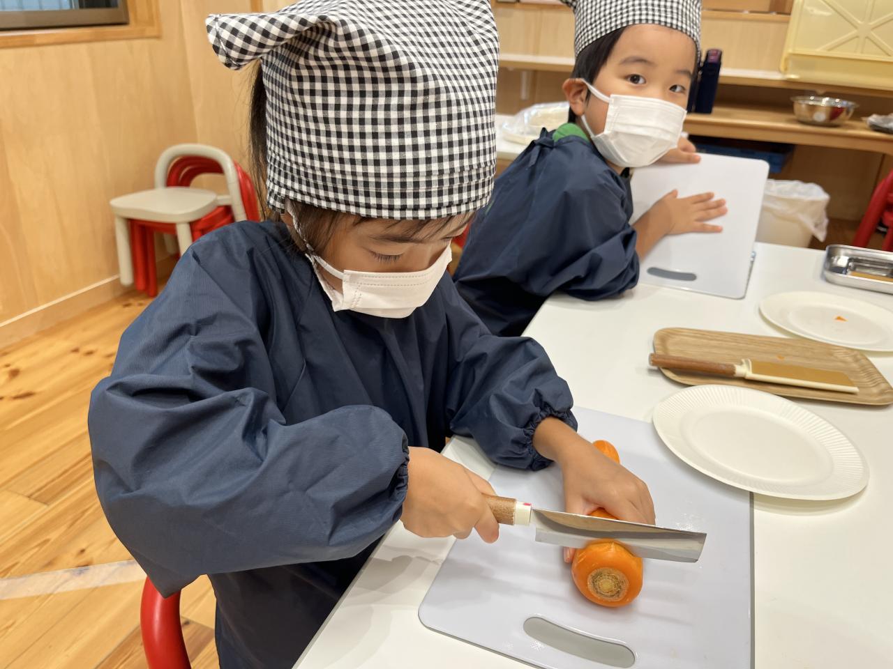4.5歳児(緑・紫名札)さんは、慣れた手つきで切っていましたね!
