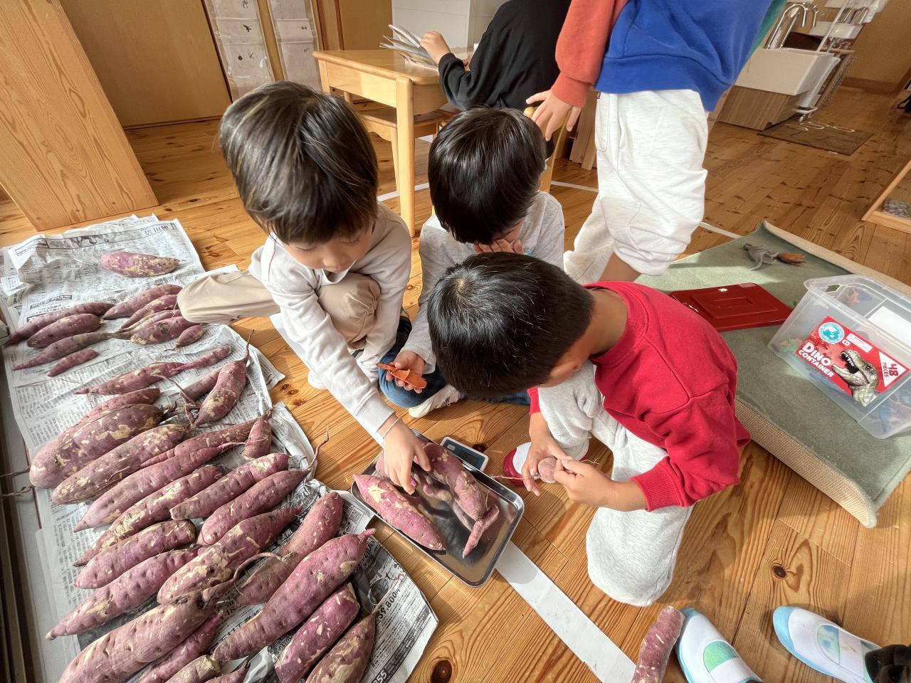 アルマジロチームは、紫さんがとってきたさつまいもを使って、