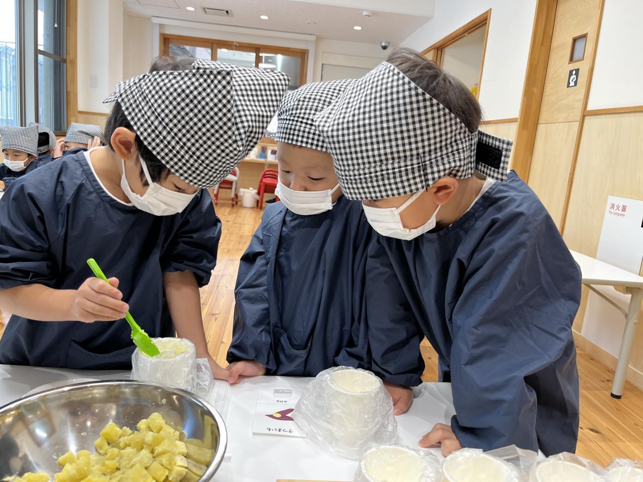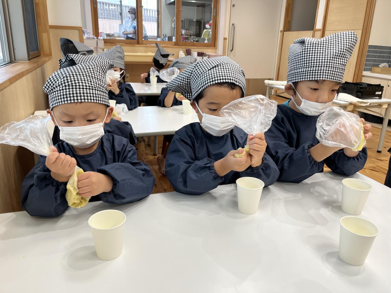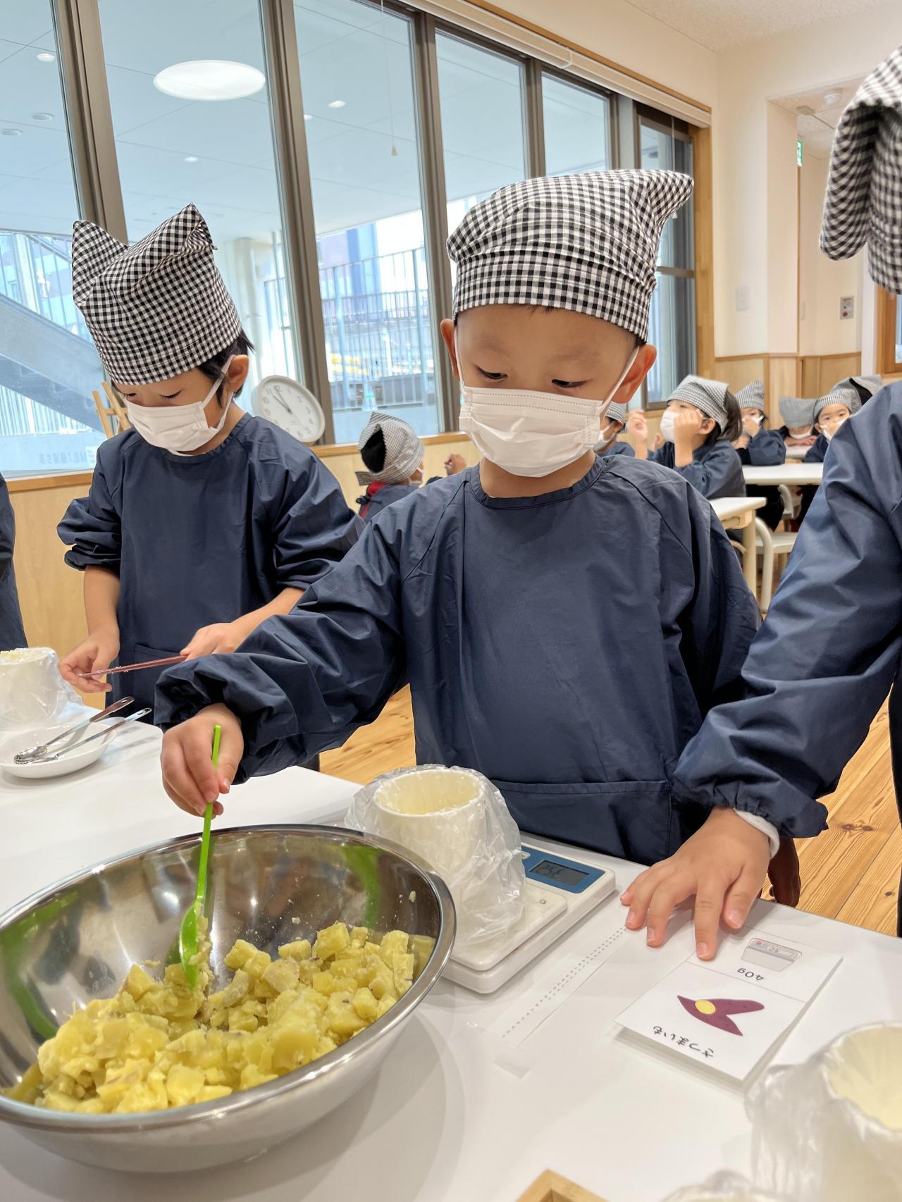 さつまいもが潰れる感触や、材料が混ざっていく様子を楽しんでいました♪
