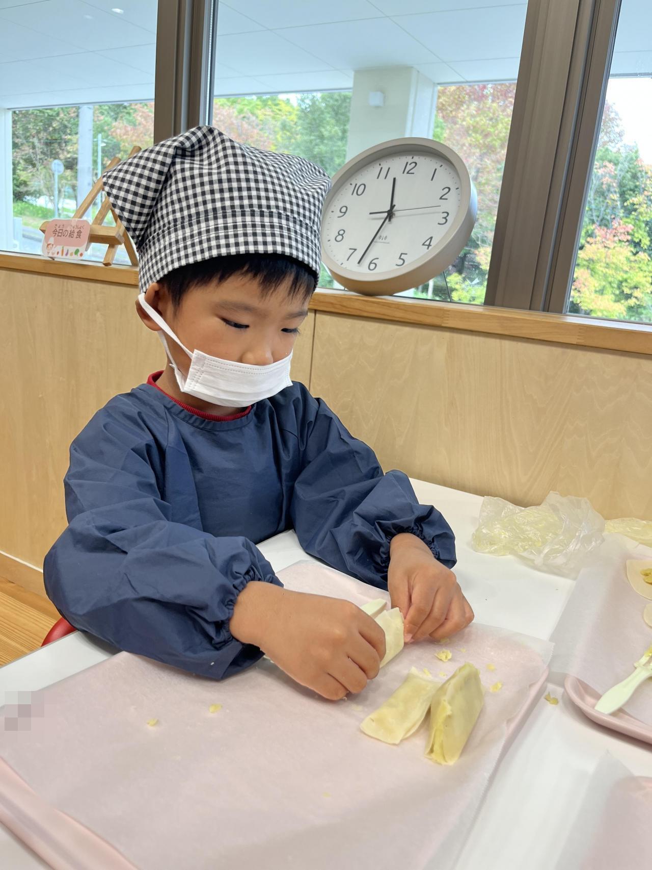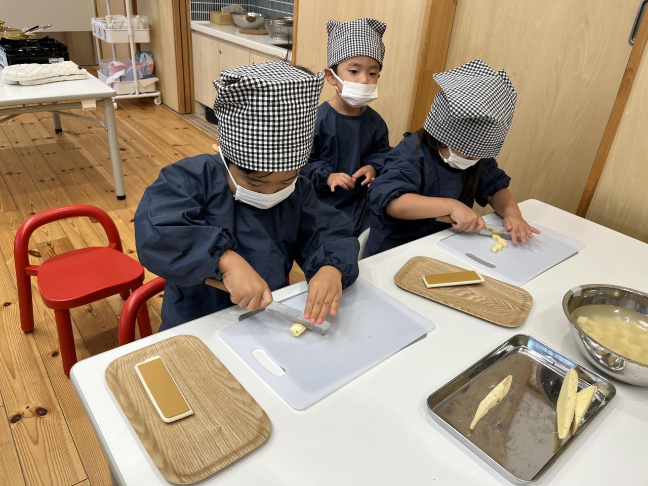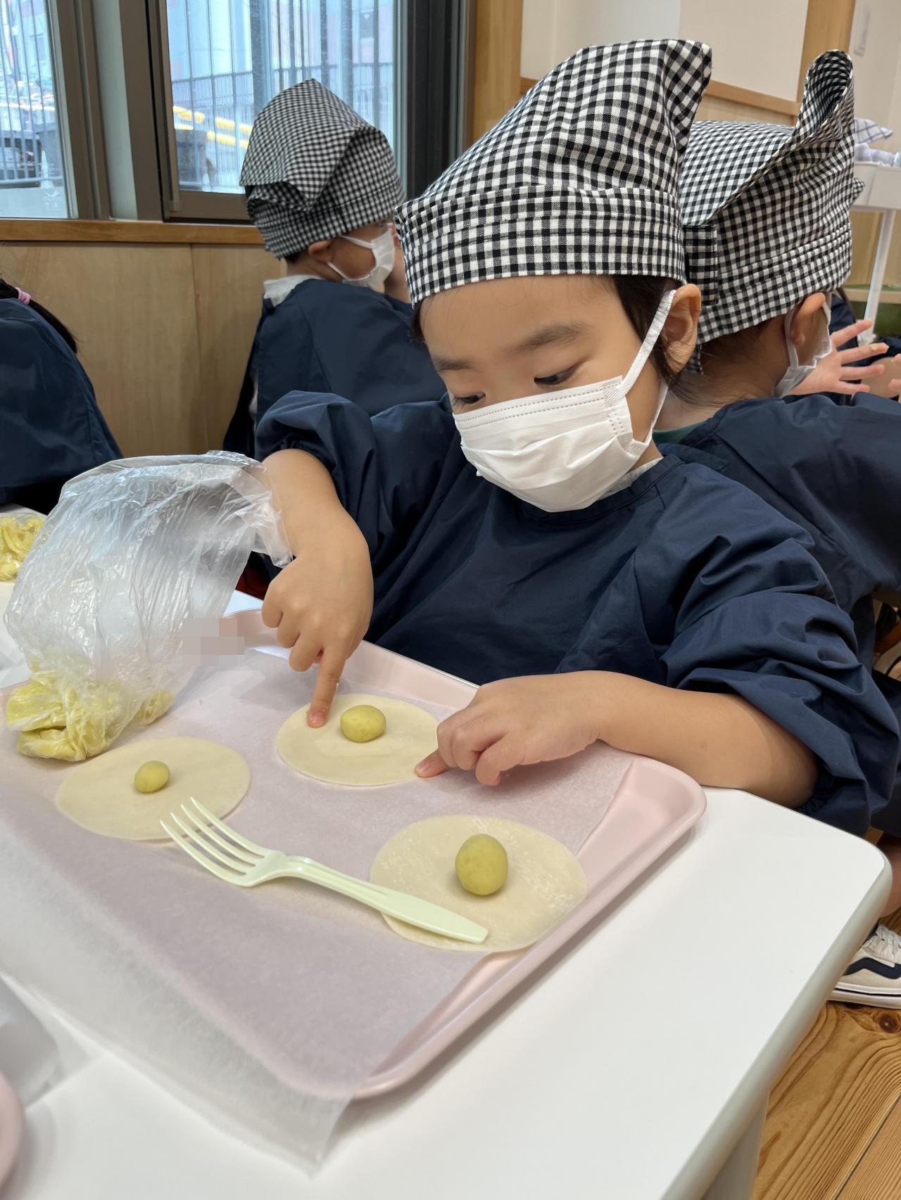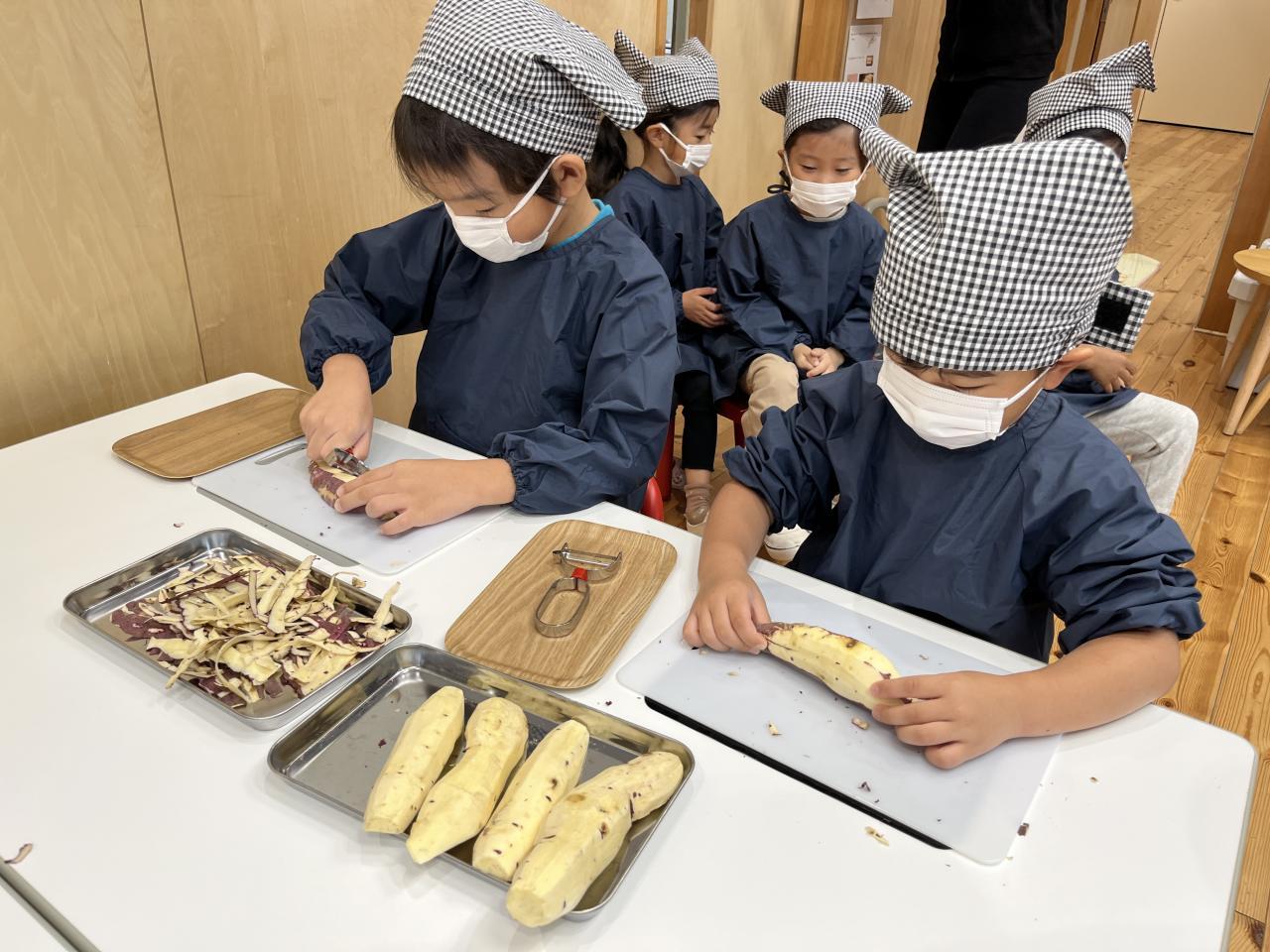 さつまいもが潰れる感触や、材料が混ざっていく様子を楽しんでいました♪
