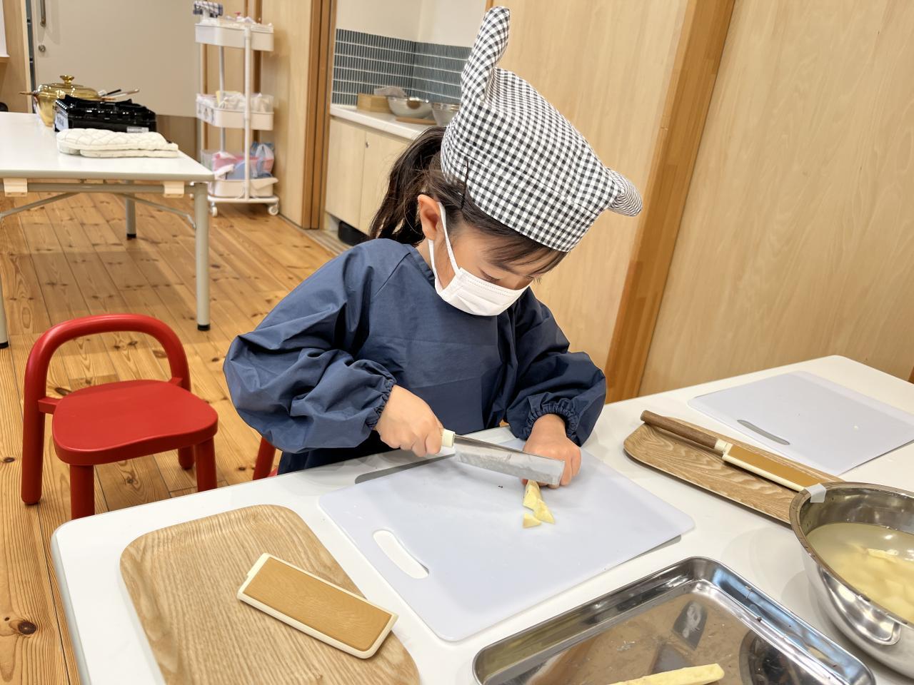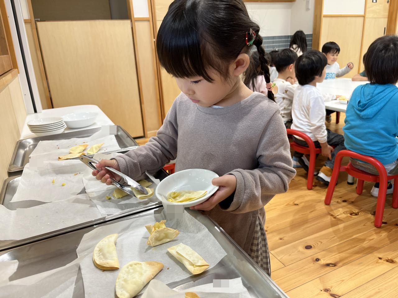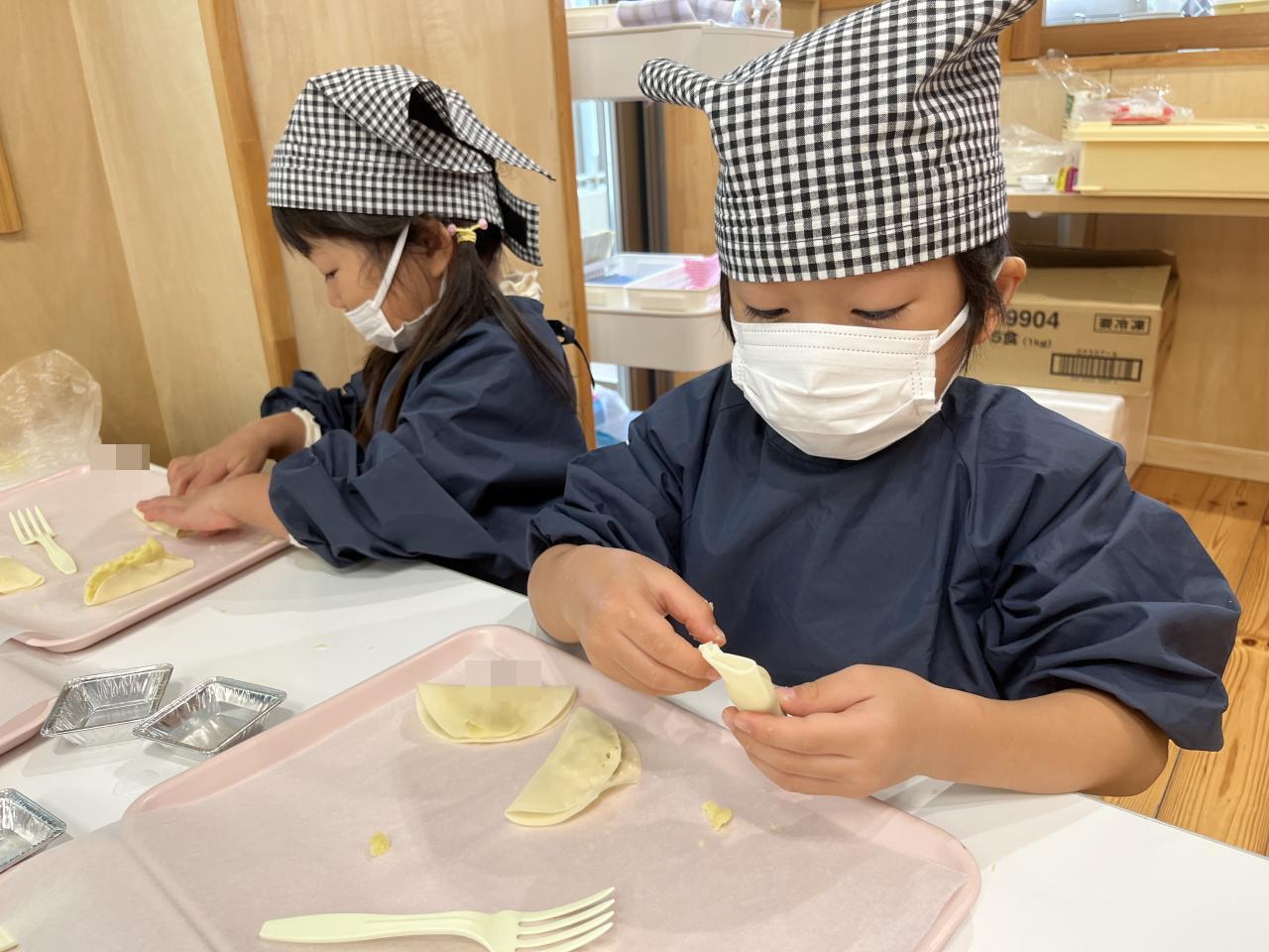 クッキングが楽しみで、中には粘土を使って餃子を作り、包む練習をしている子もいました😄