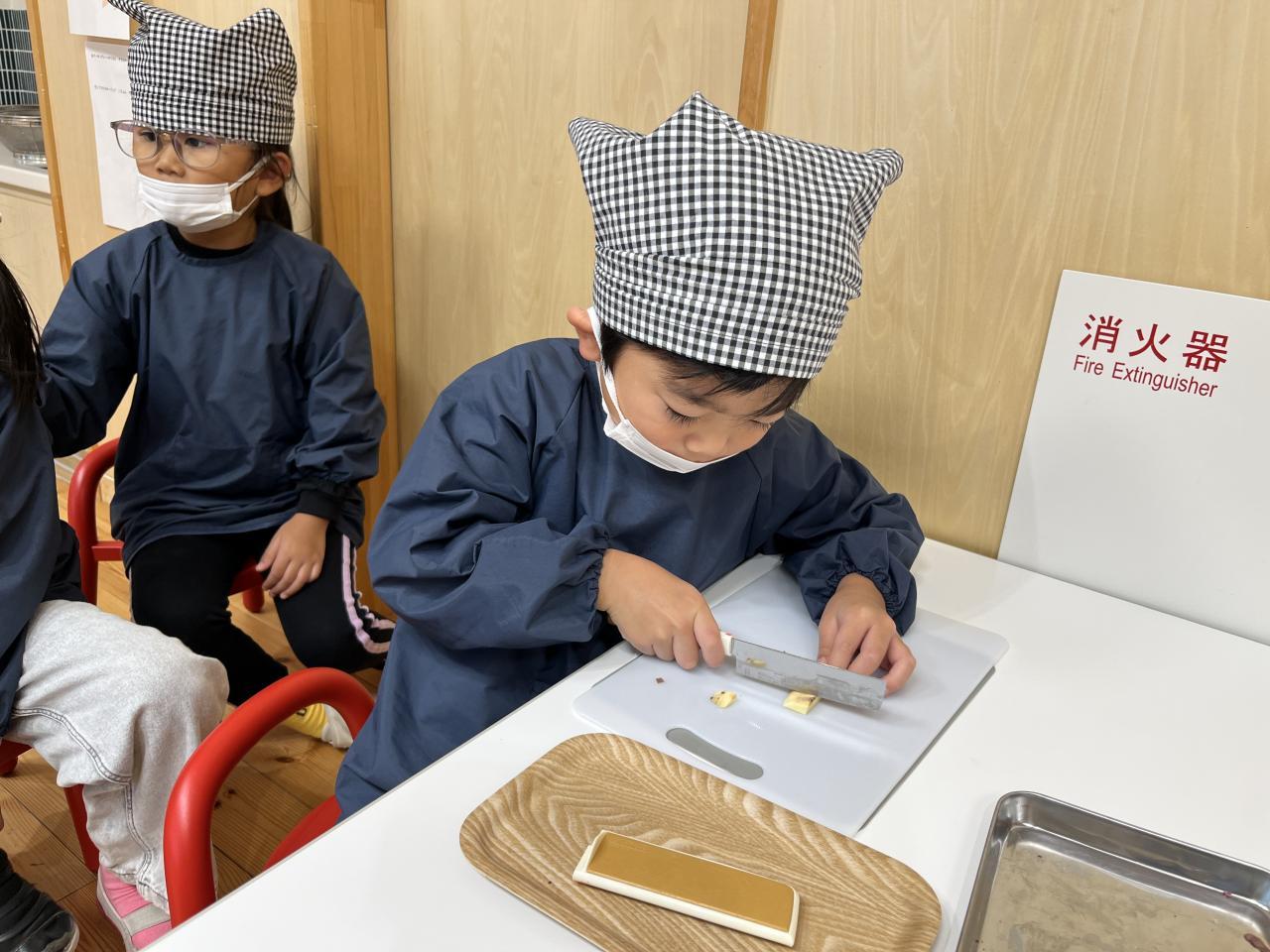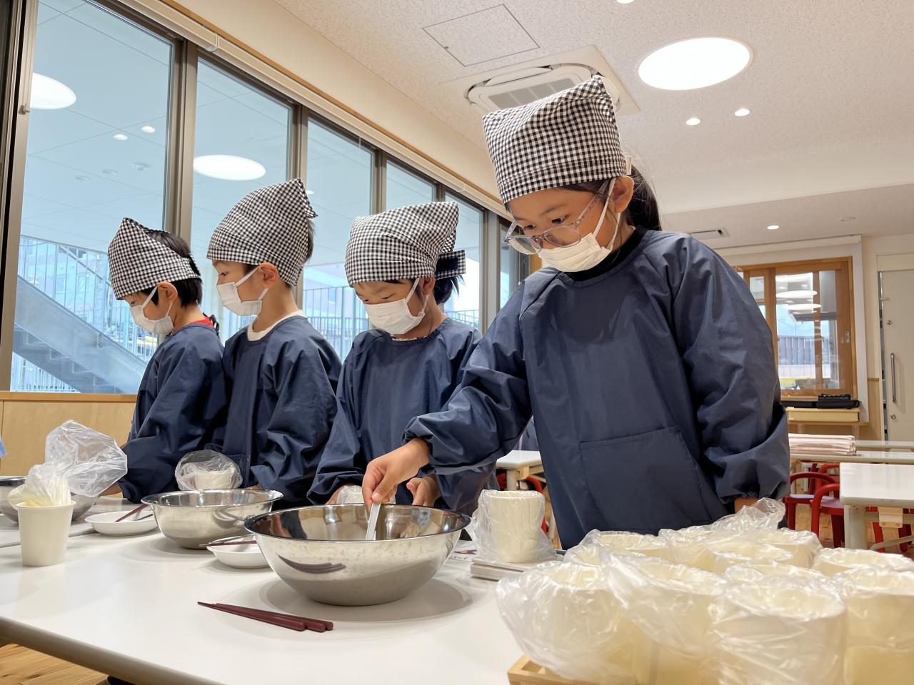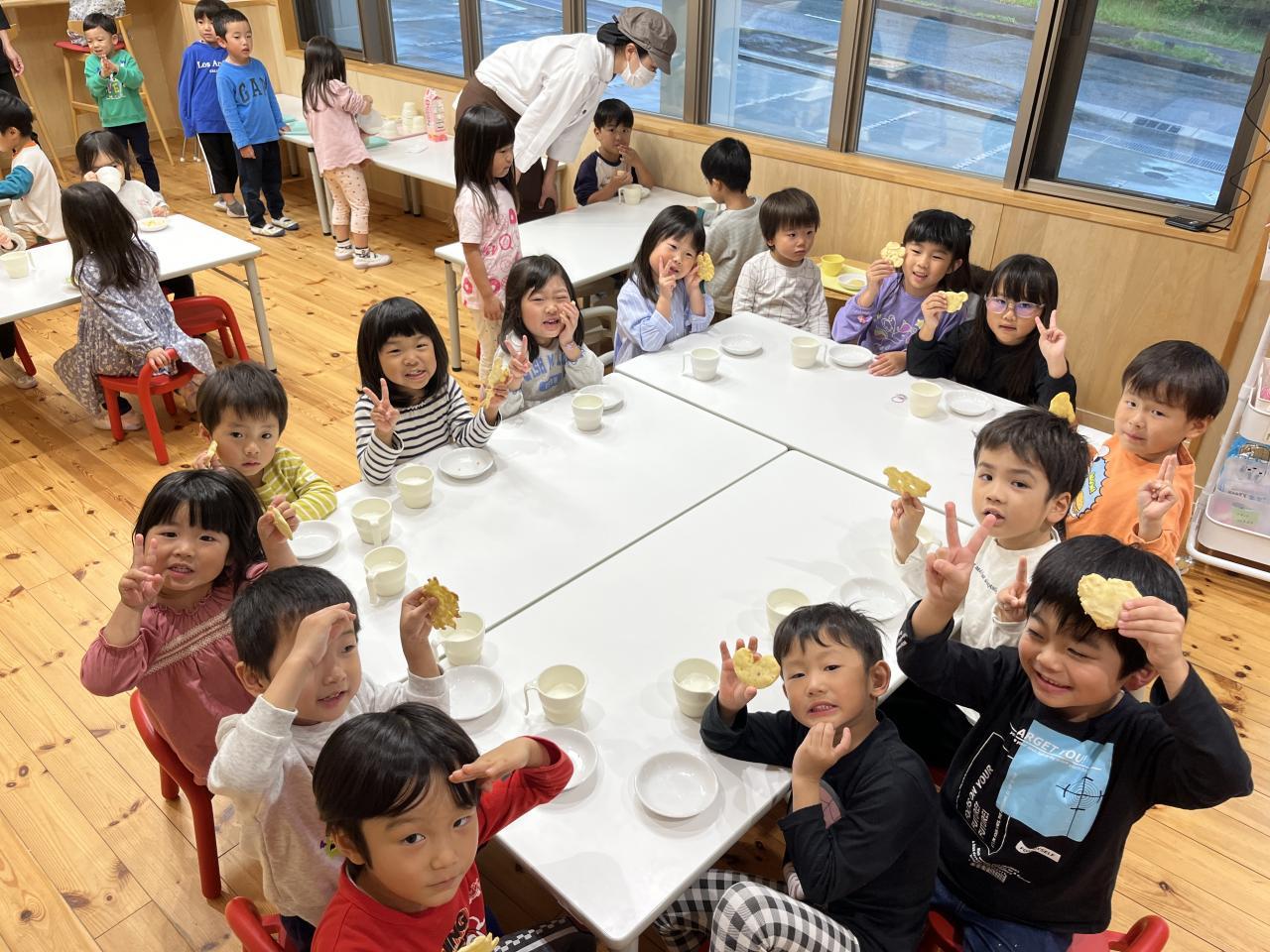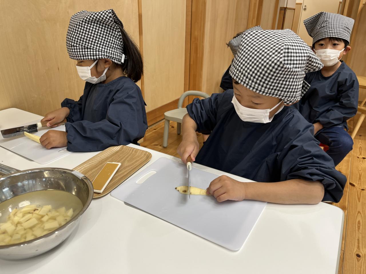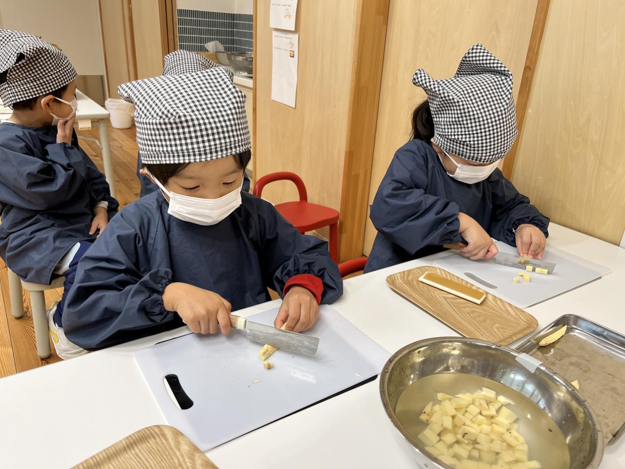 さつまいもが潰れていく感触や材料が混ざっていく様子が楽しい子ども達🥰