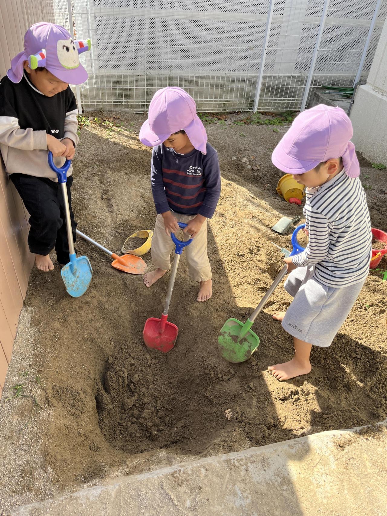 散歩にも沢山出かけられるようになり、公園に行ってみると落ち葉や木の実が沢山あり、子ども達も興味津々🙂