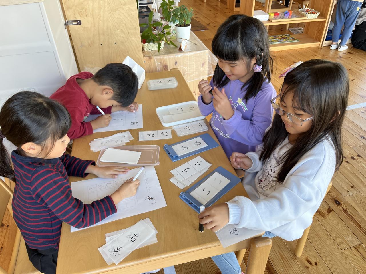 文字を書くことが難しい子も、鉛筆を正しく持ち、とても集中した様子で、薄く書かれた文字を丁寧になぞっている姿が見られます🙂
