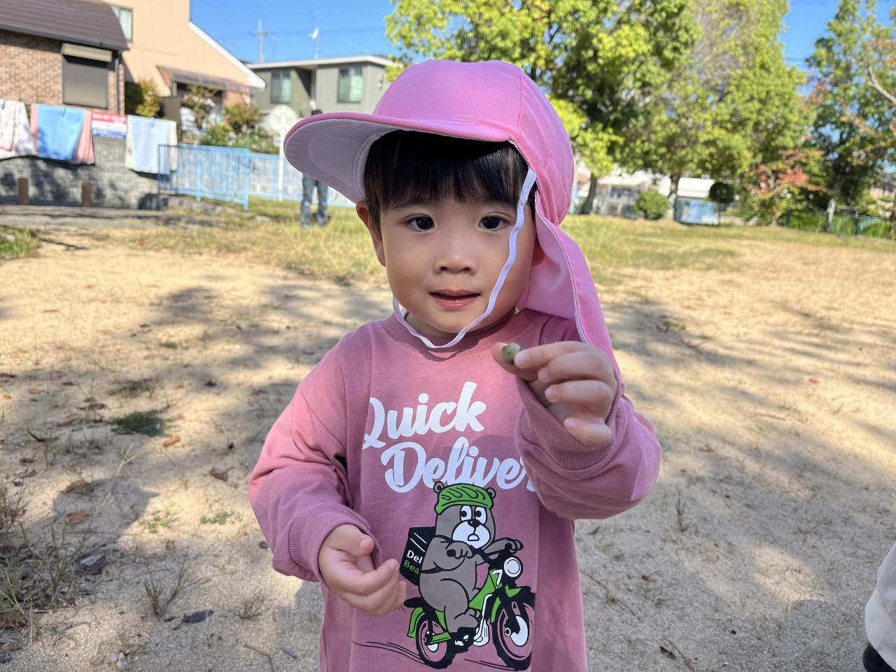 見つけたどんぐりなどは、ギュッと手に握って大事に園まで持って帰っています。