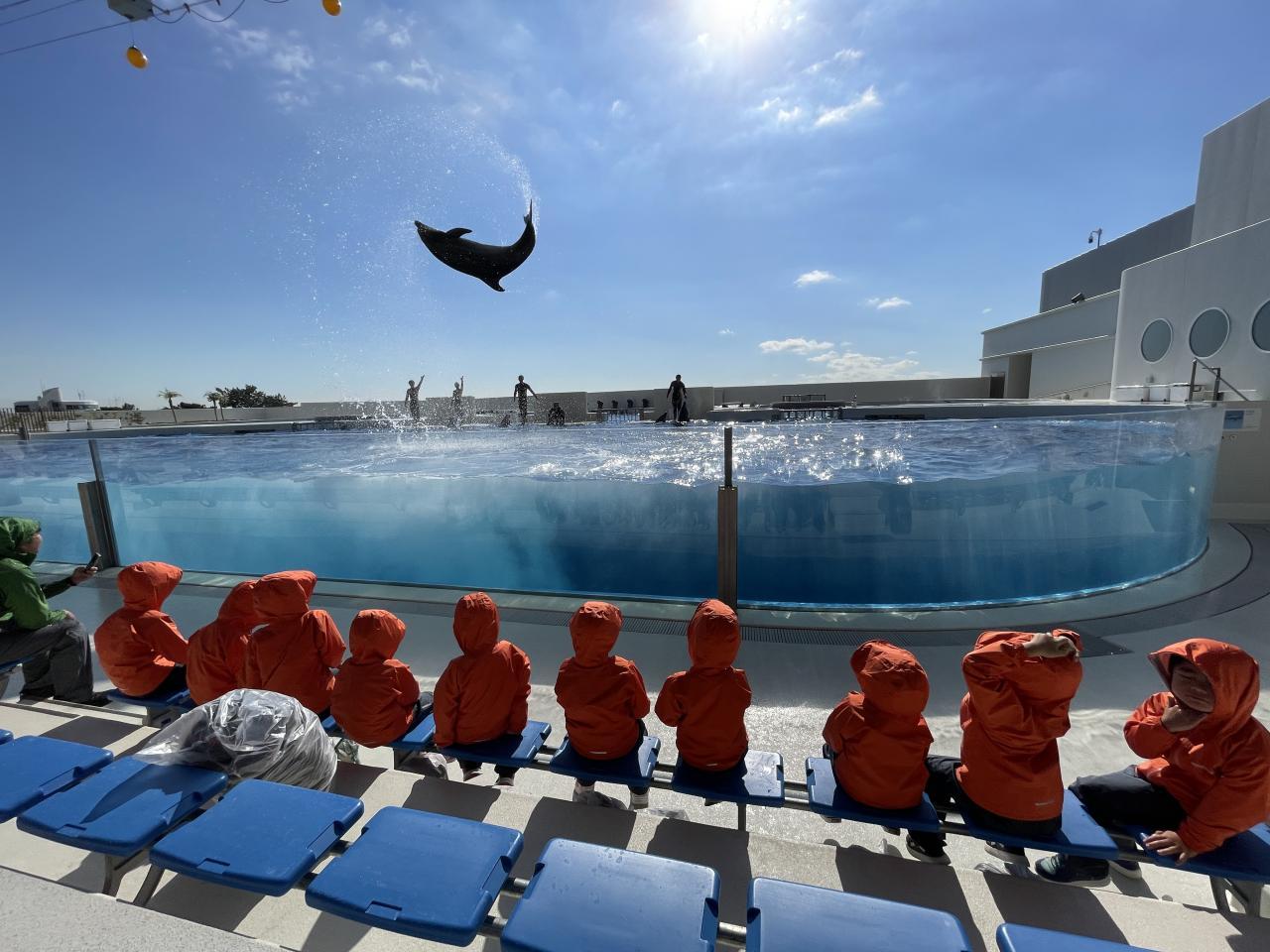 イルカが泳いでいる姿やジャンプしている姿に大興奮の子ども達🙂