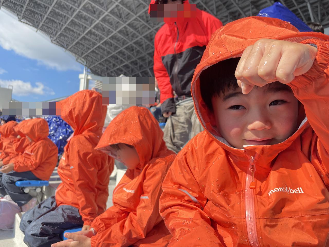 カッパを着て準備万全にし、最前列で見ることに🙂