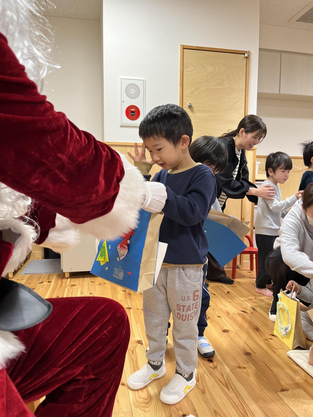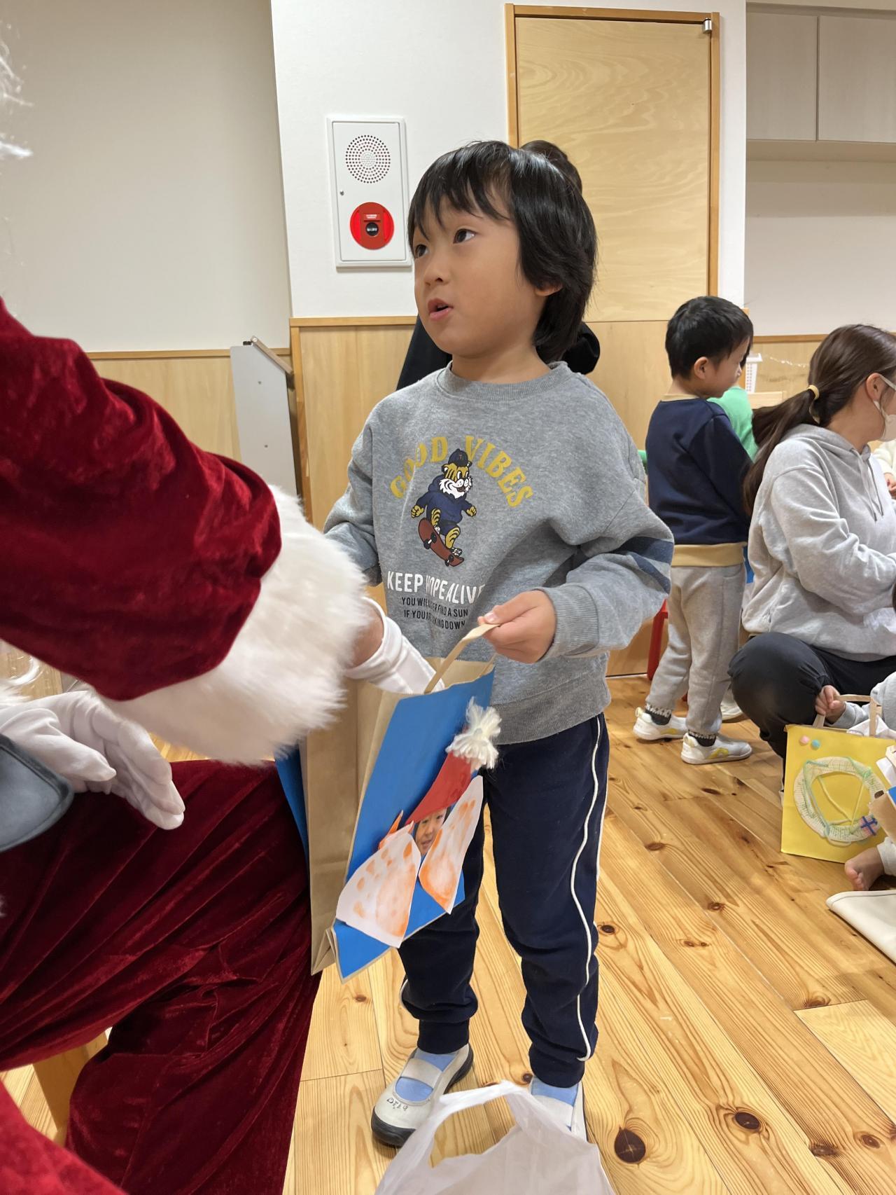 サンタさんに自分の作ったバッグにプレゼントをもらって