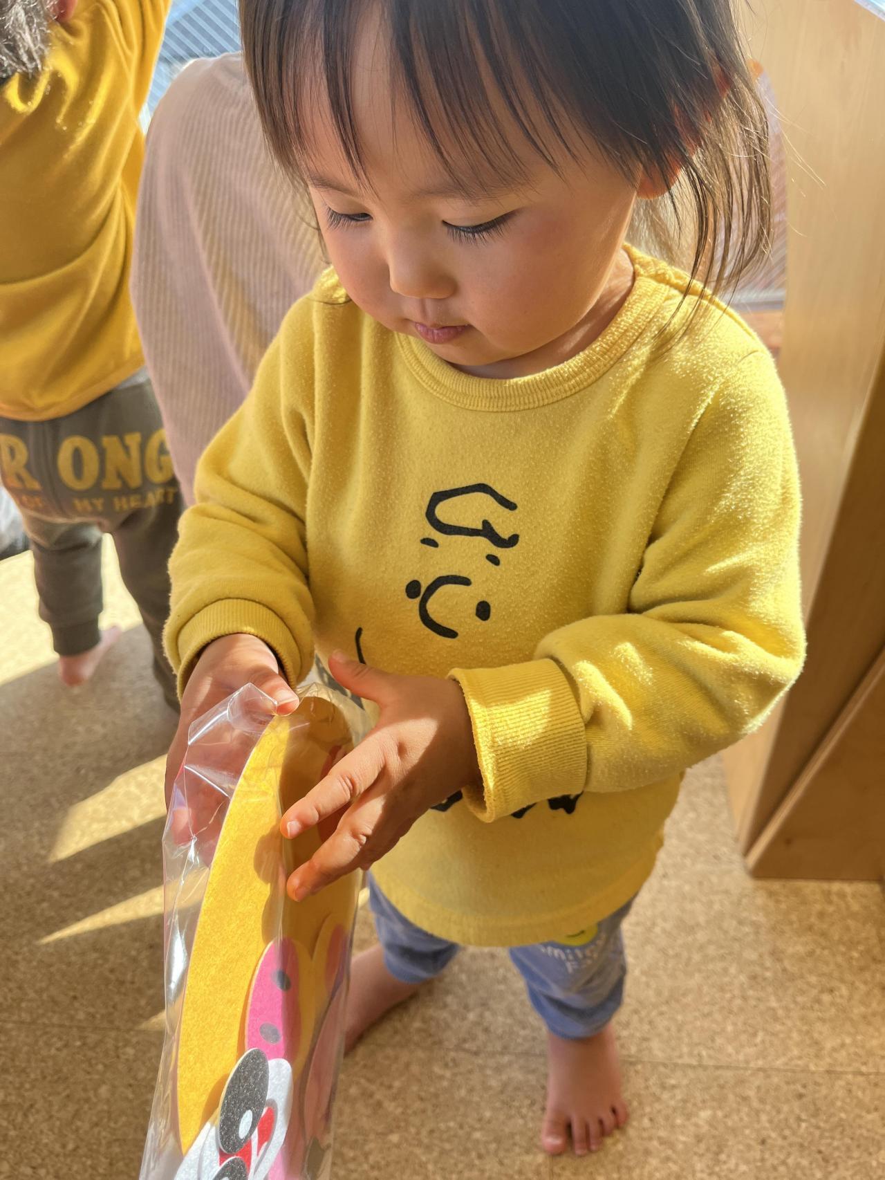 プレゼントをもらい、とっても嬉しそうな0,1歳児さんでした😊
