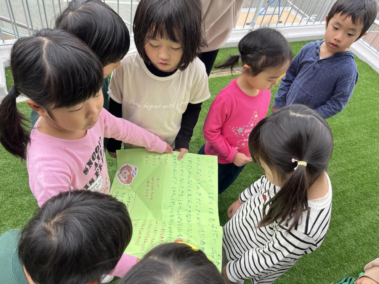 みんなで集会をしていると、空から手紙が降ってきました✉