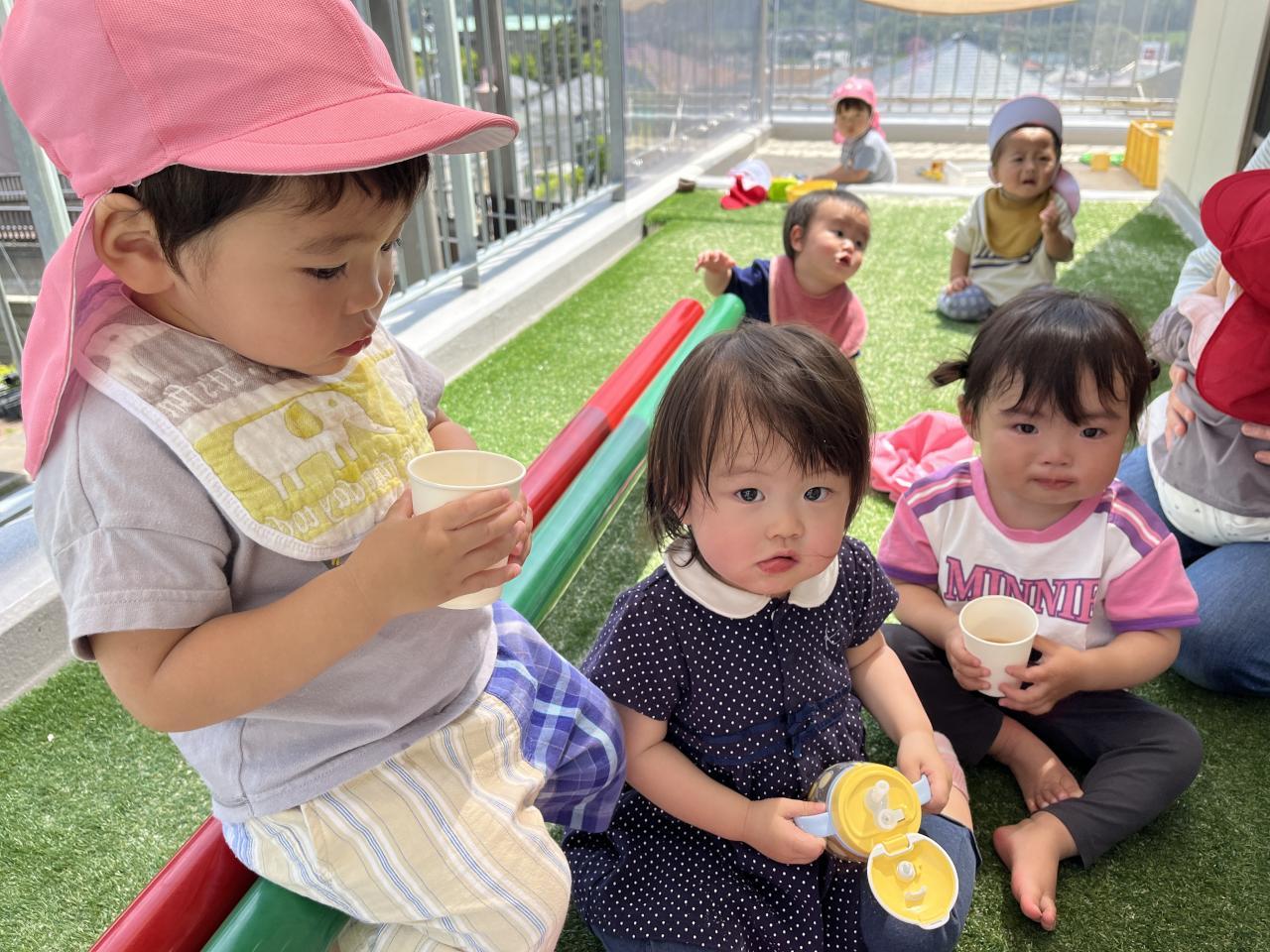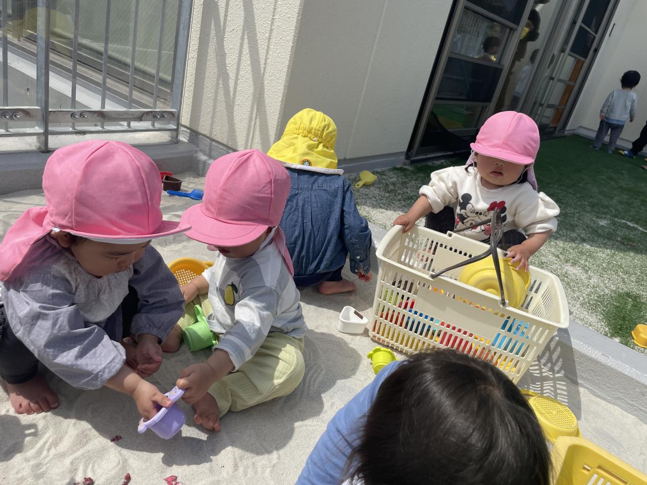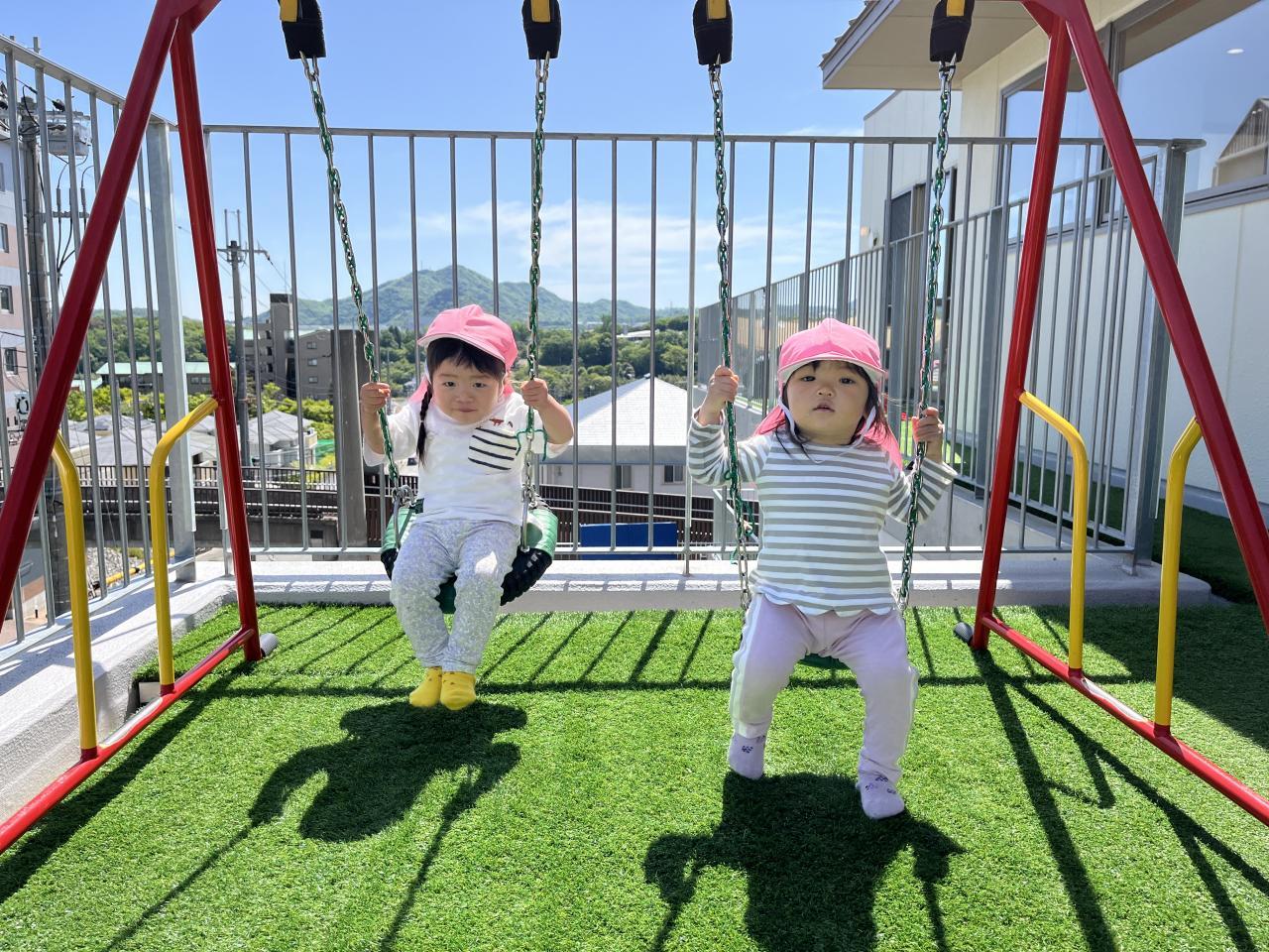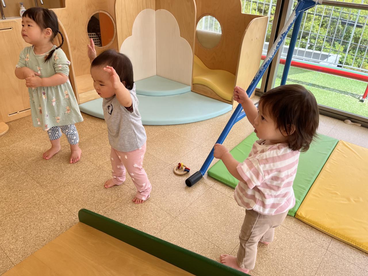 園庭でも元気いっぱい遊びでいますよ😊🎶
