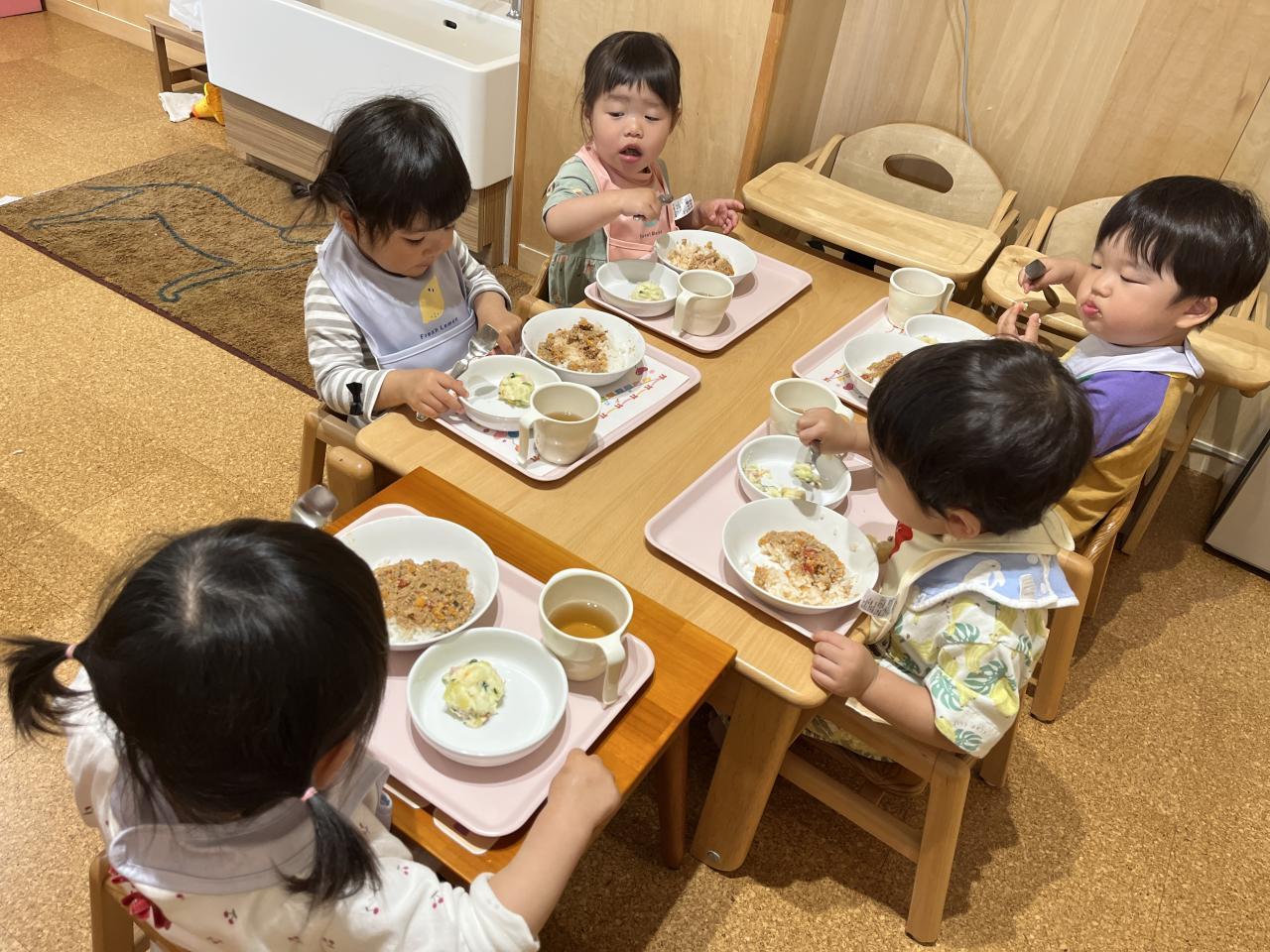 手づかみで食べたり、スプーンを使って食べようとしたりする姿が見られますよ👀!