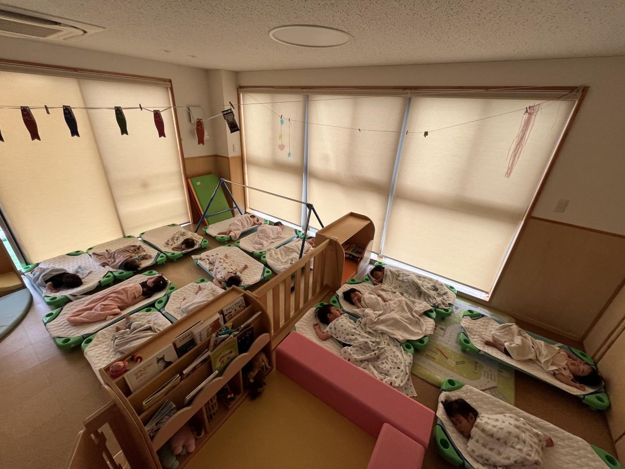 たくさん遊んで、もりもり給食を食べた後はお昼寝の時間😴