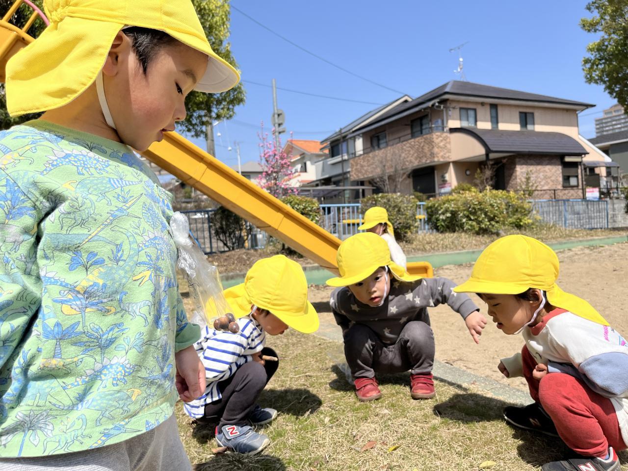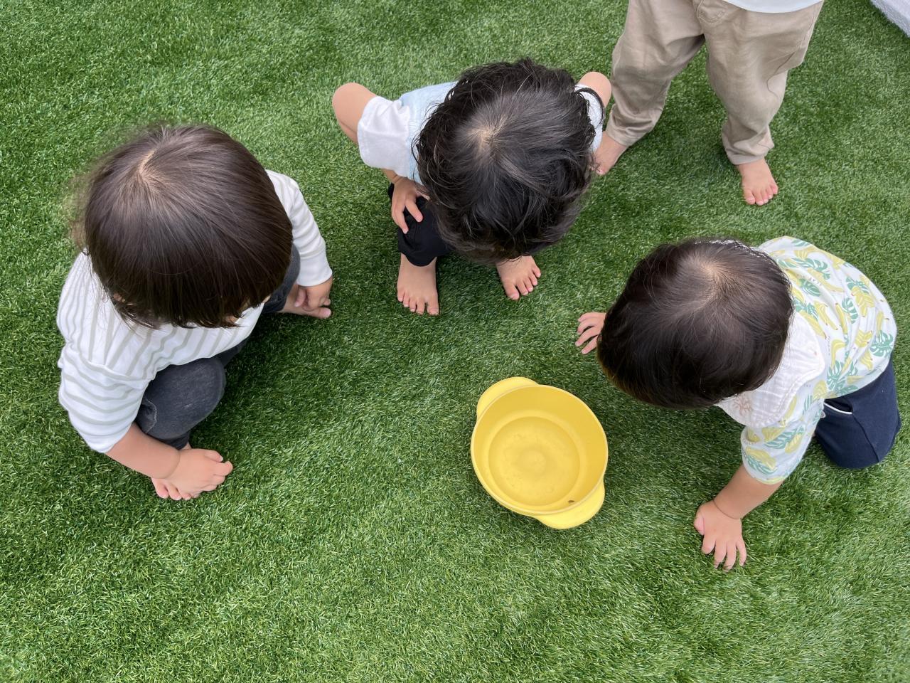 「むしいた!!」と、園庭で虫を見つけじっくり観察したりしています🐜