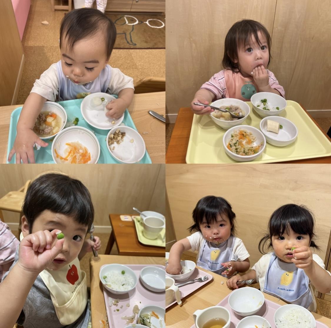 給食に豆が入っているのを見つけると、とってもうれしそうでした😋✨