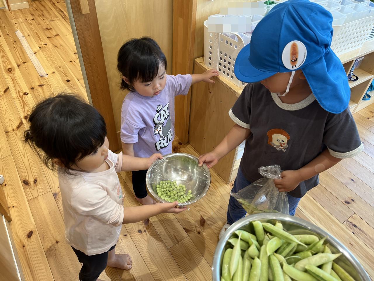 さやつきの豆を剥きました!