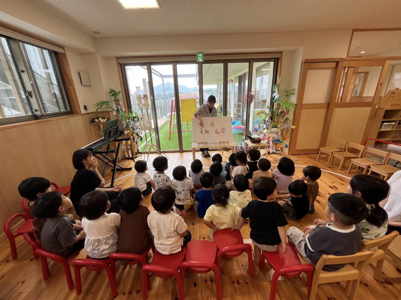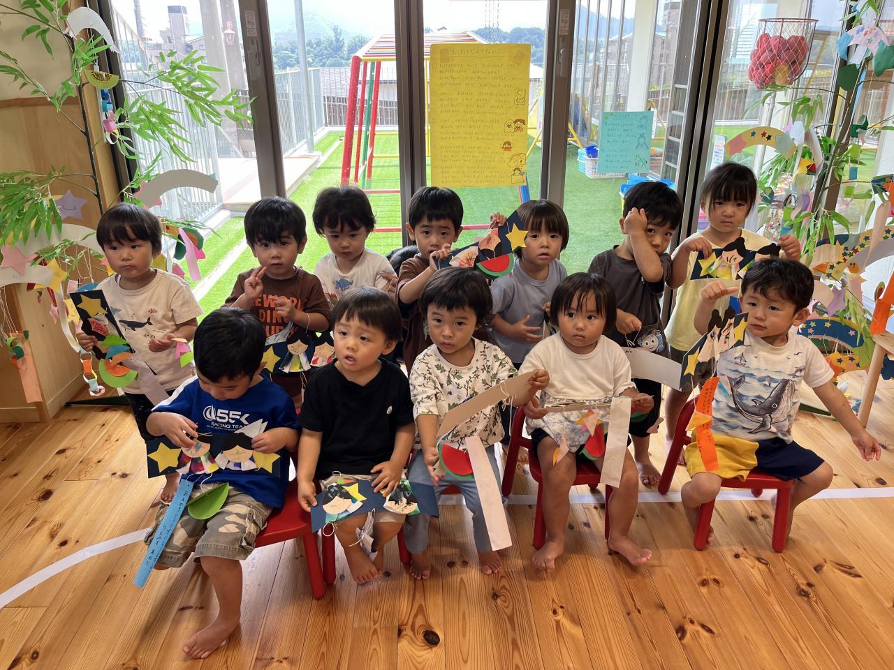 先月から製作をしたり歌をうたって楽しみにしていた七夕集会に参加しました!