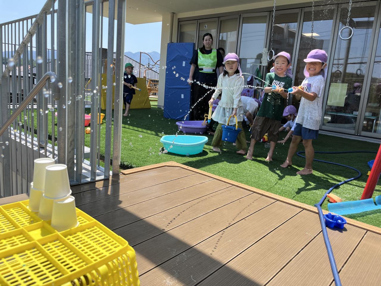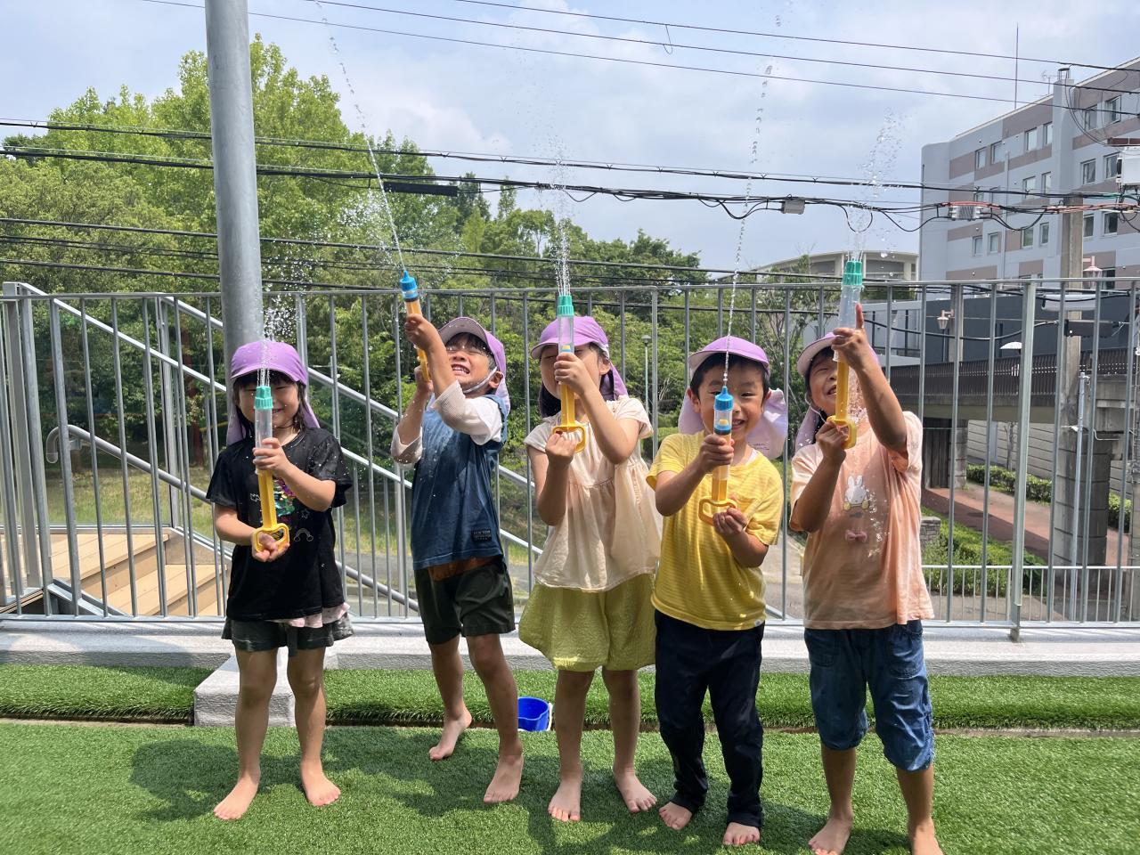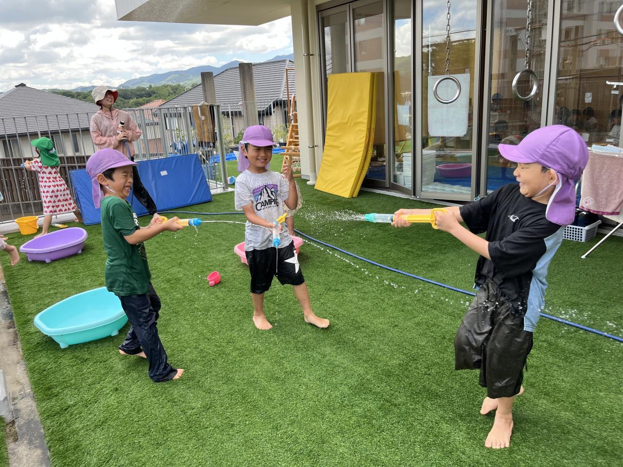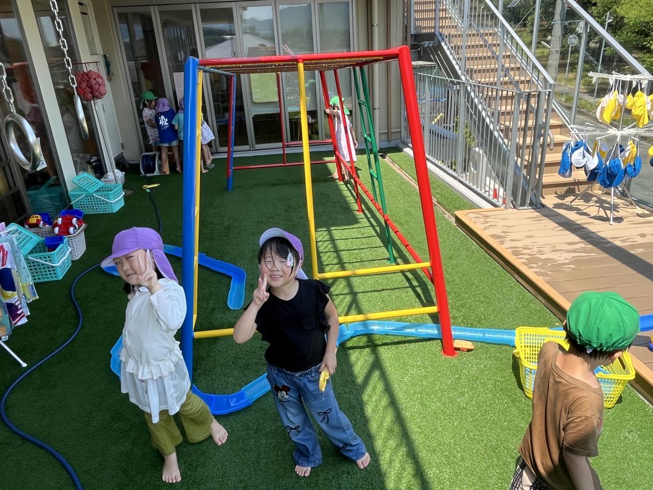 水遊びの中でも、自分たちで色々なことを考えながら遊びを進めている姿が見られています😄