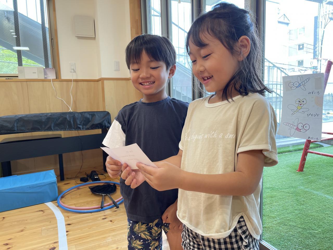 文字を読むだけでなく、友達と息を揃えて、お客さんに聞こえやすい声で読むことが難しく、何度もみんなで練習したね😅