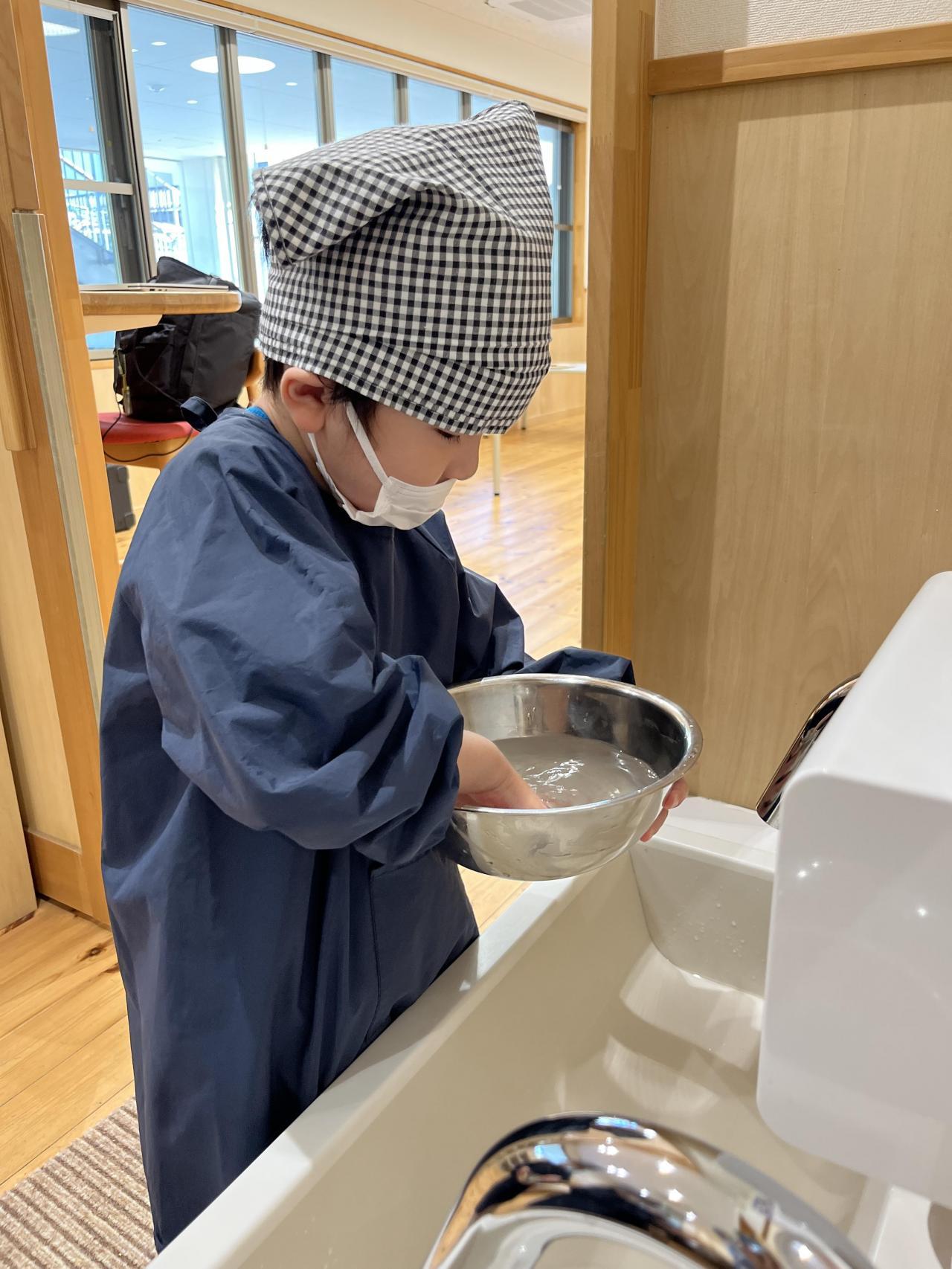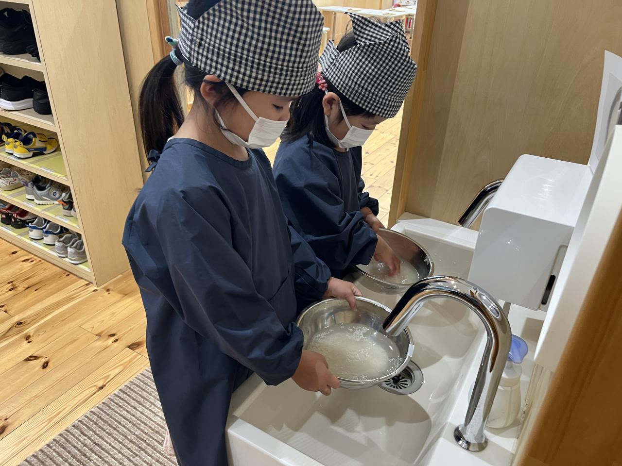 お米がこぼれないように手で押さえながらそーっと水を流したり、