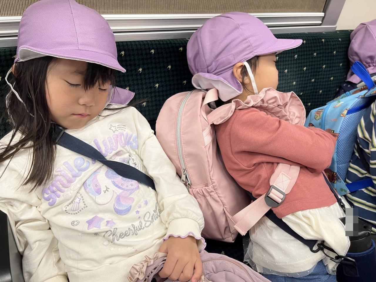 帰りの電車では、沢山歩いて、色々な生き物を見て、お疲れの様子の子ども達でした🥱💤