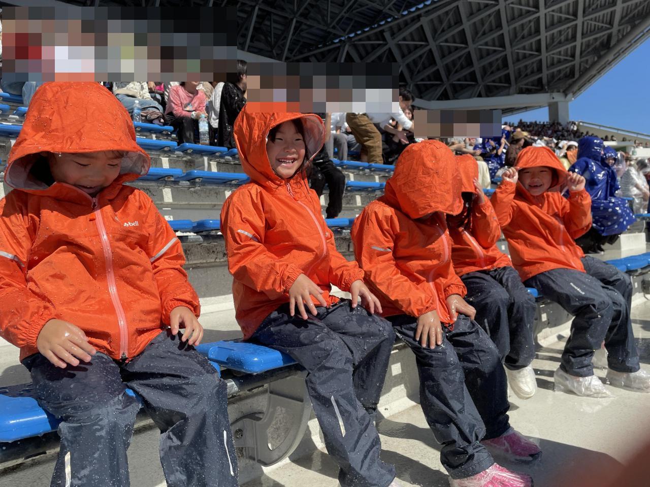 水に濡れたい子どもと、濡れたくない子どもで分かれて座ることに。