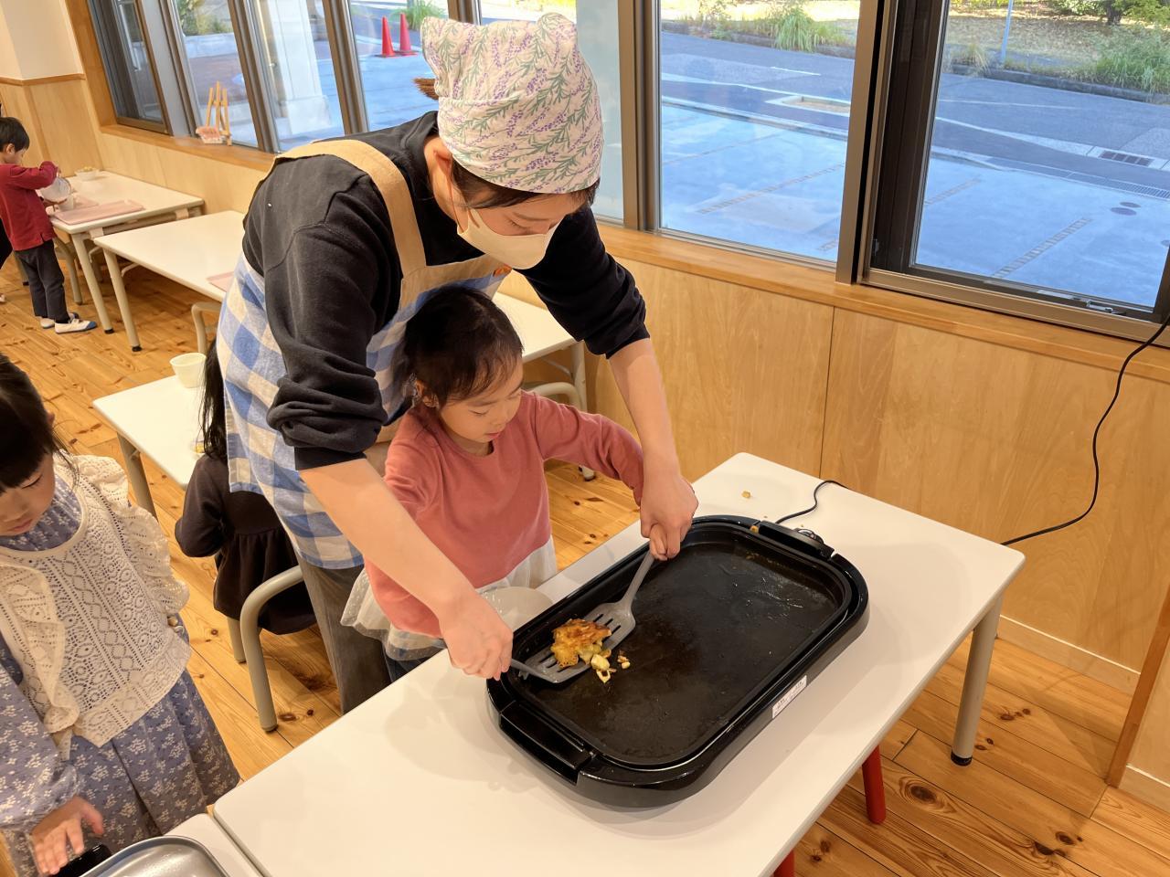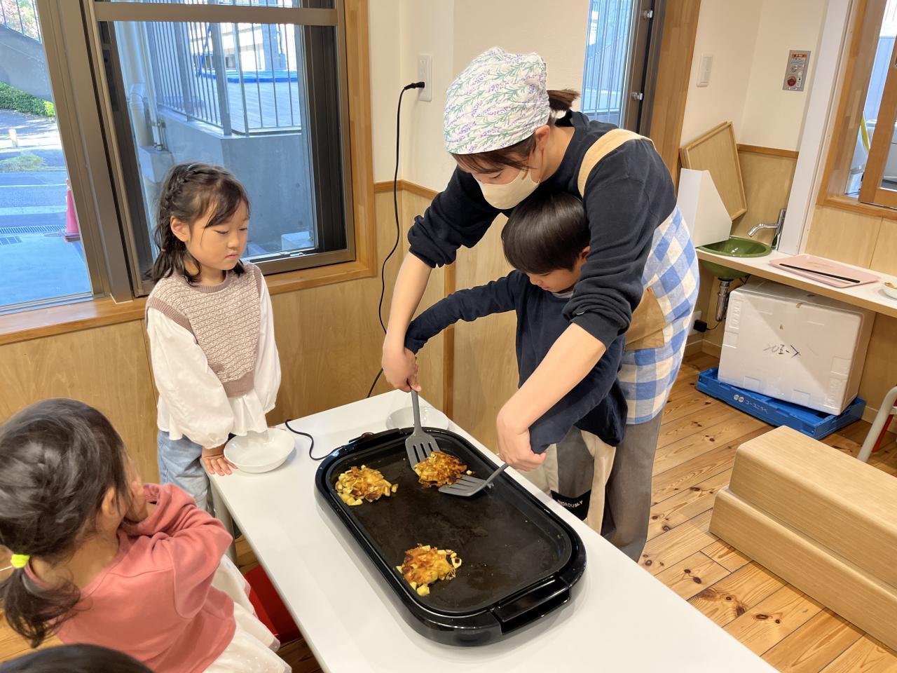 裏返した時の焼き目を見て、より完成への期待感が増していく子ども達💭