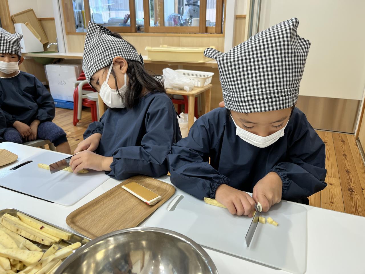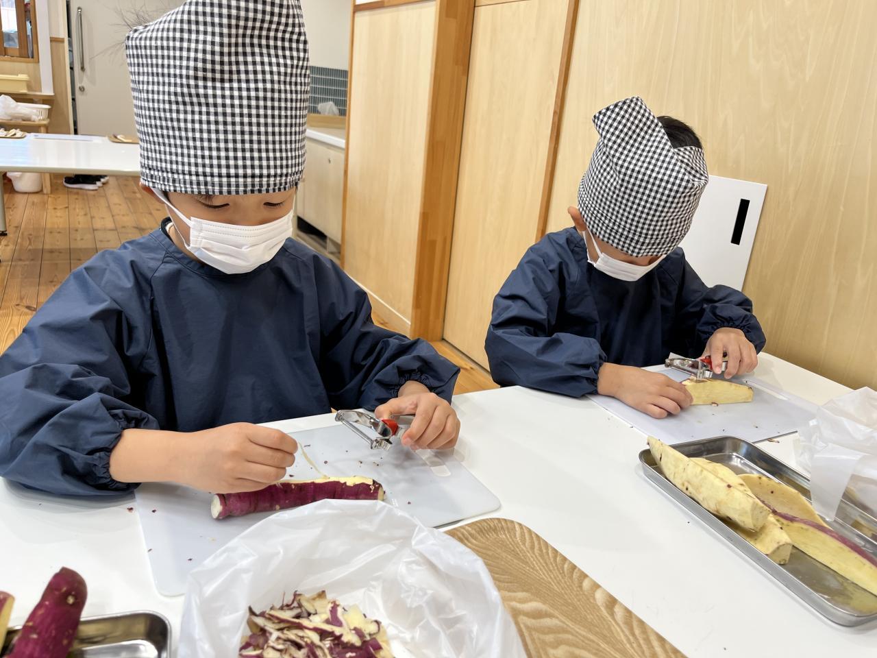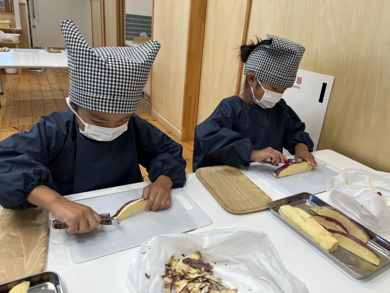 沢山の皮を剥きとさつまいもを切り、途中で疲れてしまう子どももいました😓