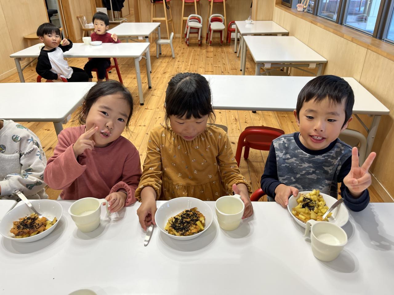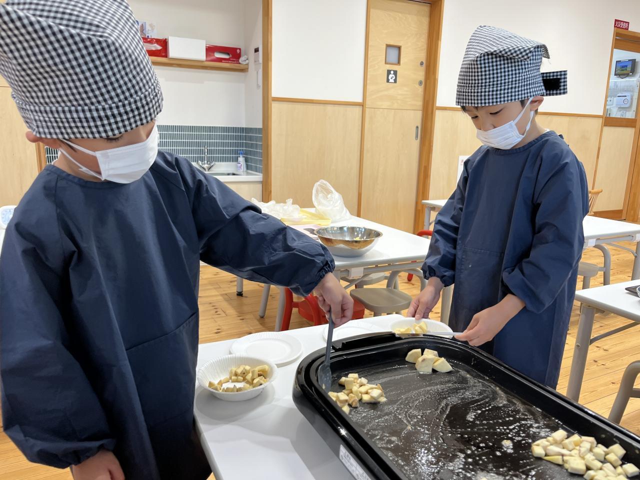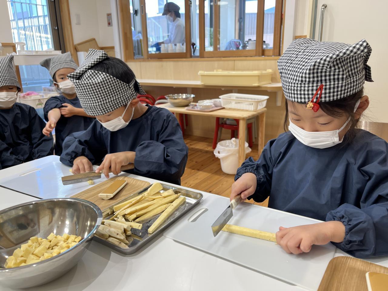 沢山の皮を剥きとさつまいもを切り、途中で疲れてしまう子どももいました😓