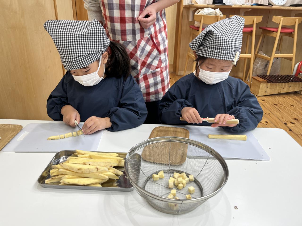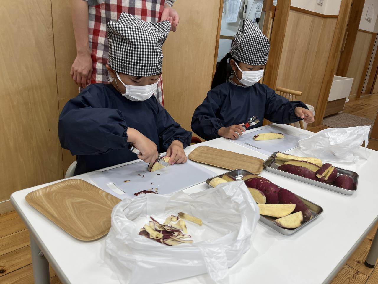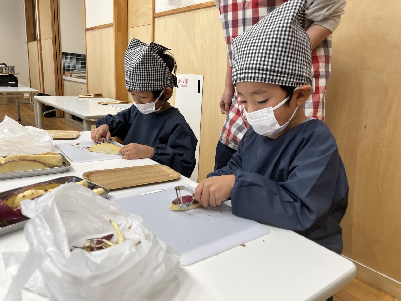 ”さつまいもの皮をむく、さつまいもを切る”