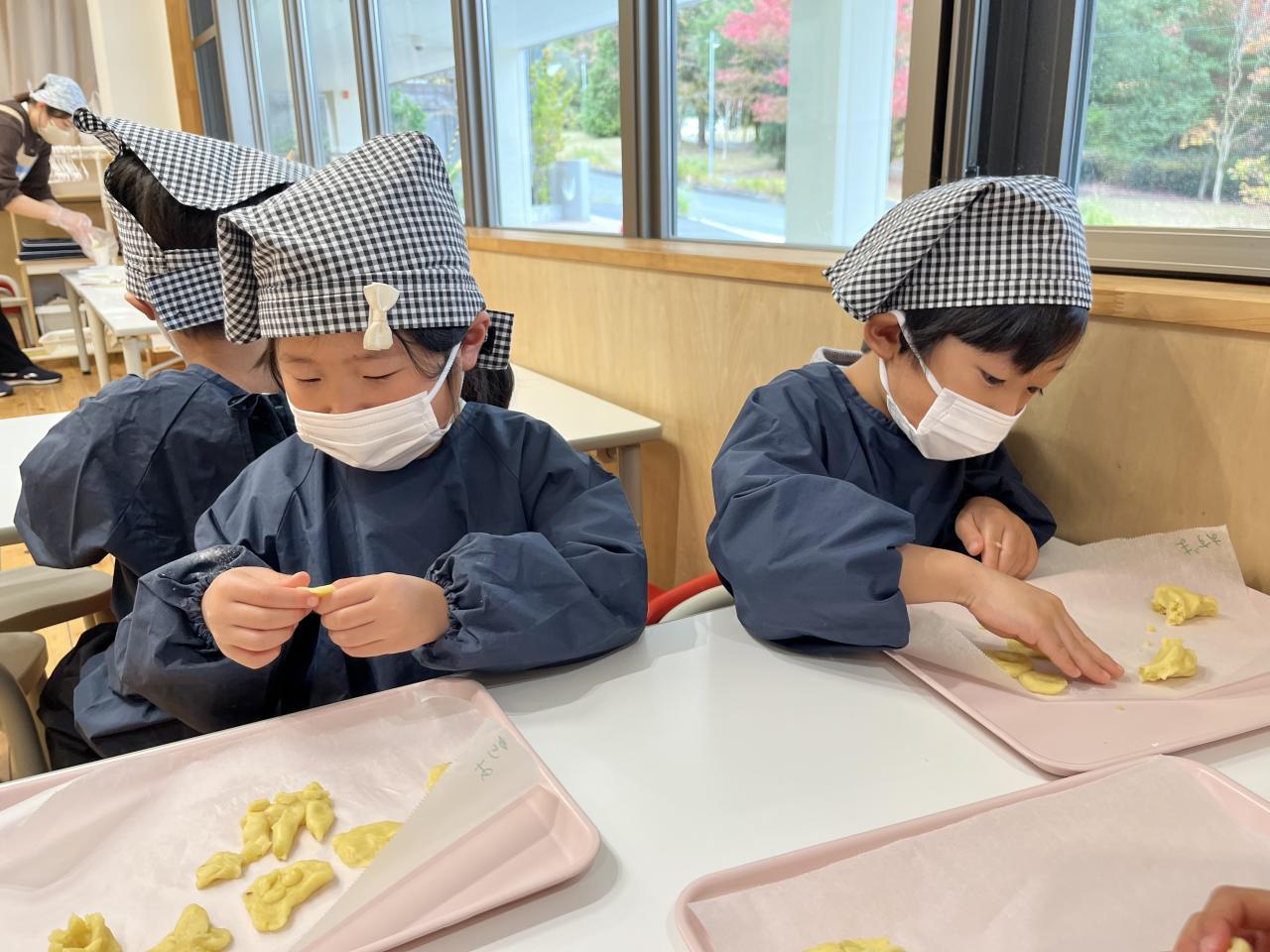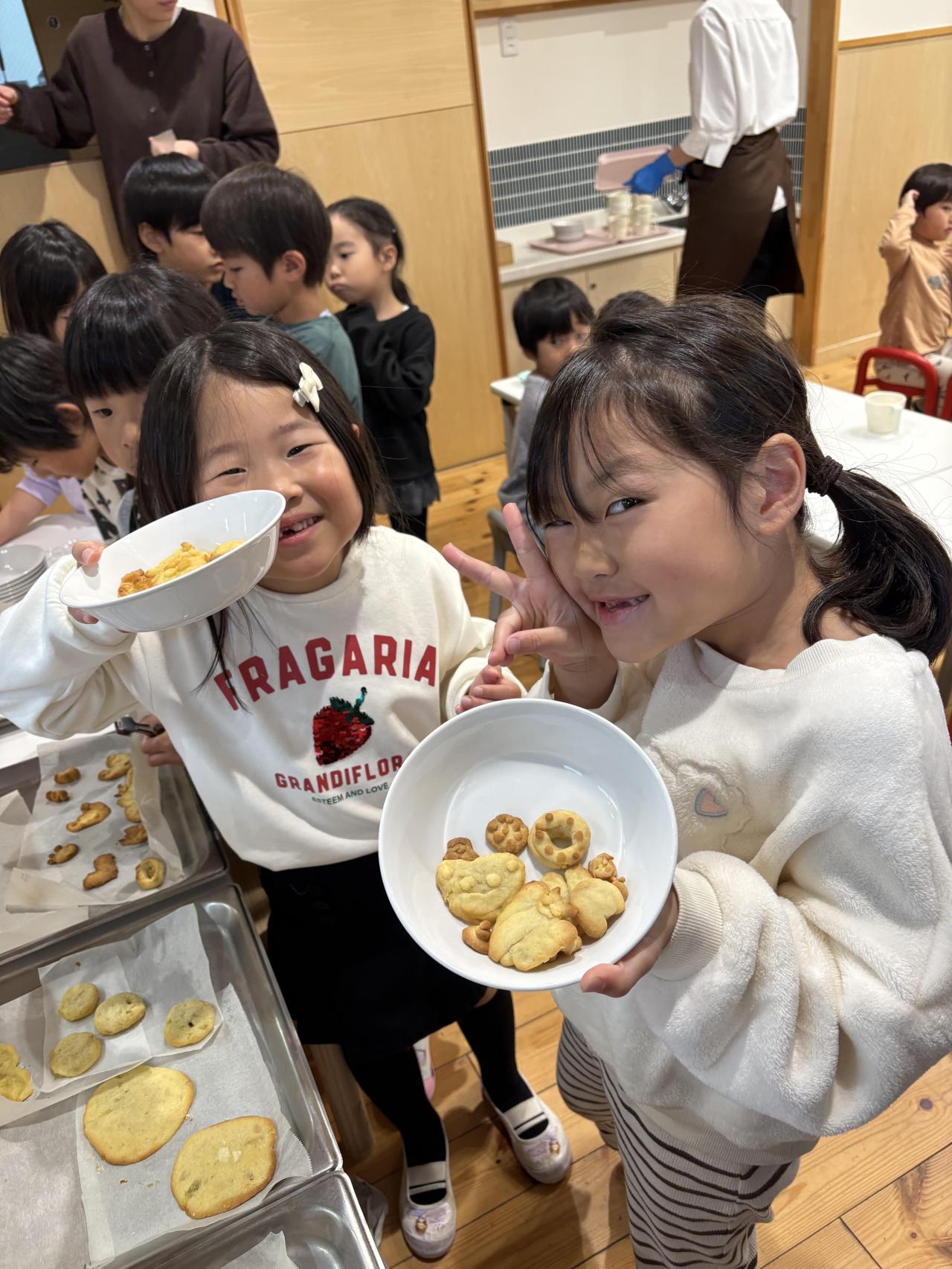 と、子ども達一人ひとりが思い思いの形を作り、個性あふれるクッキーができあがりました✨