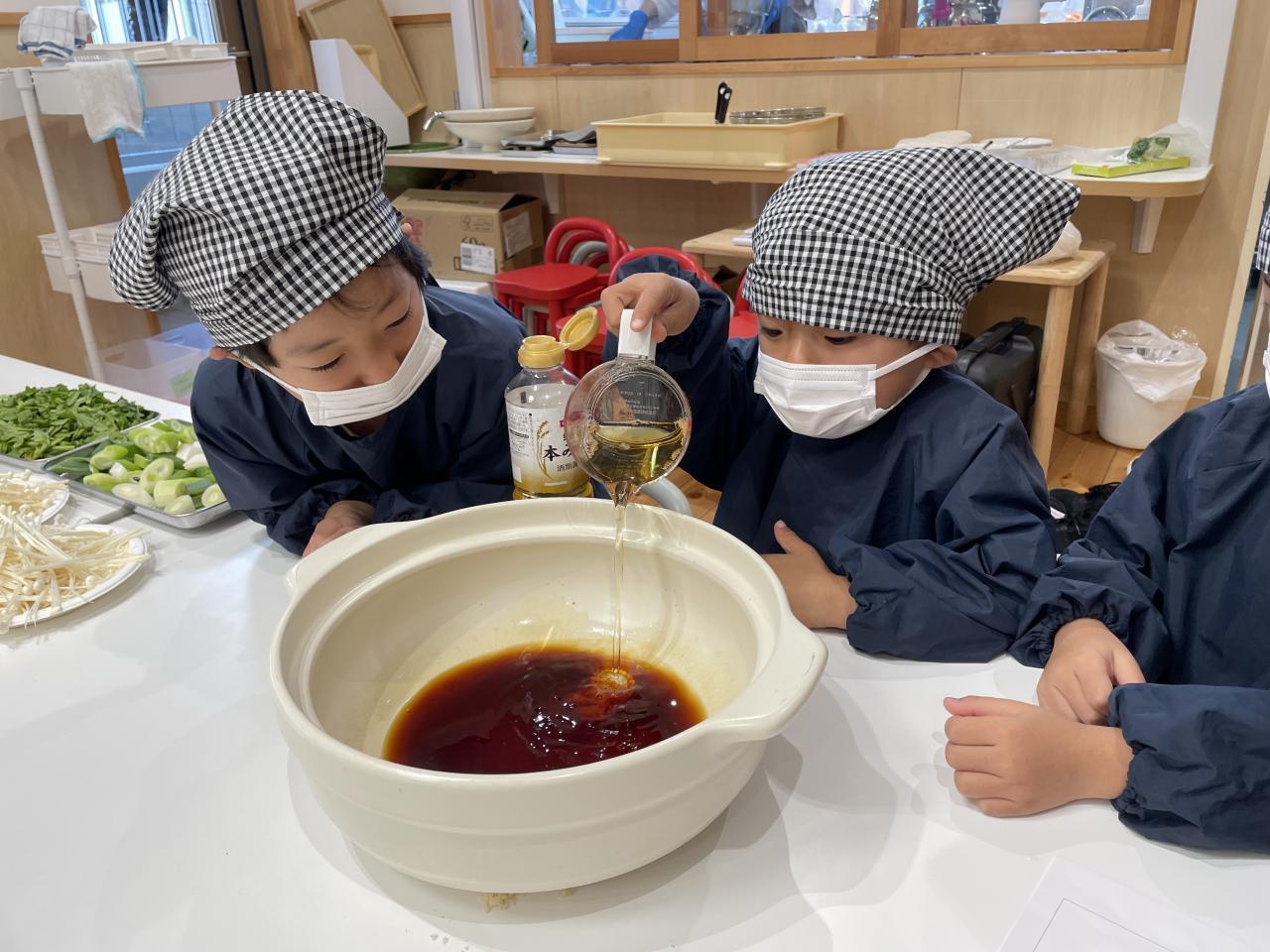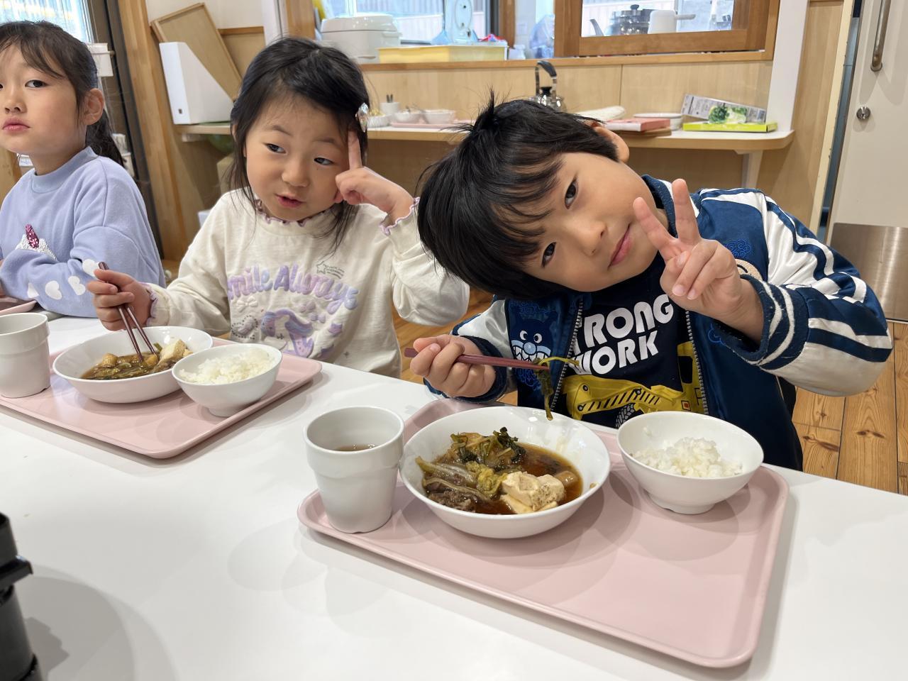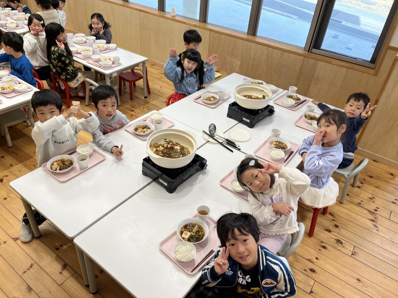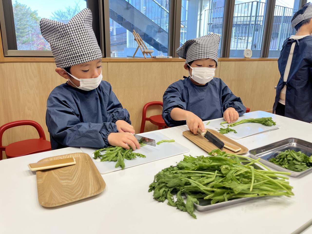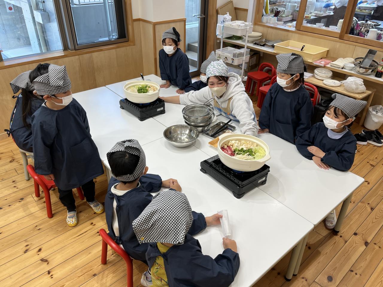 と、友達と話しながら、白菜とえのきをちぎったり、さいたりすることを楽しんでいました🥰