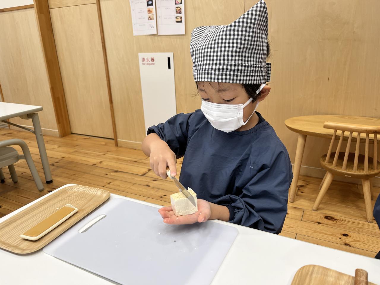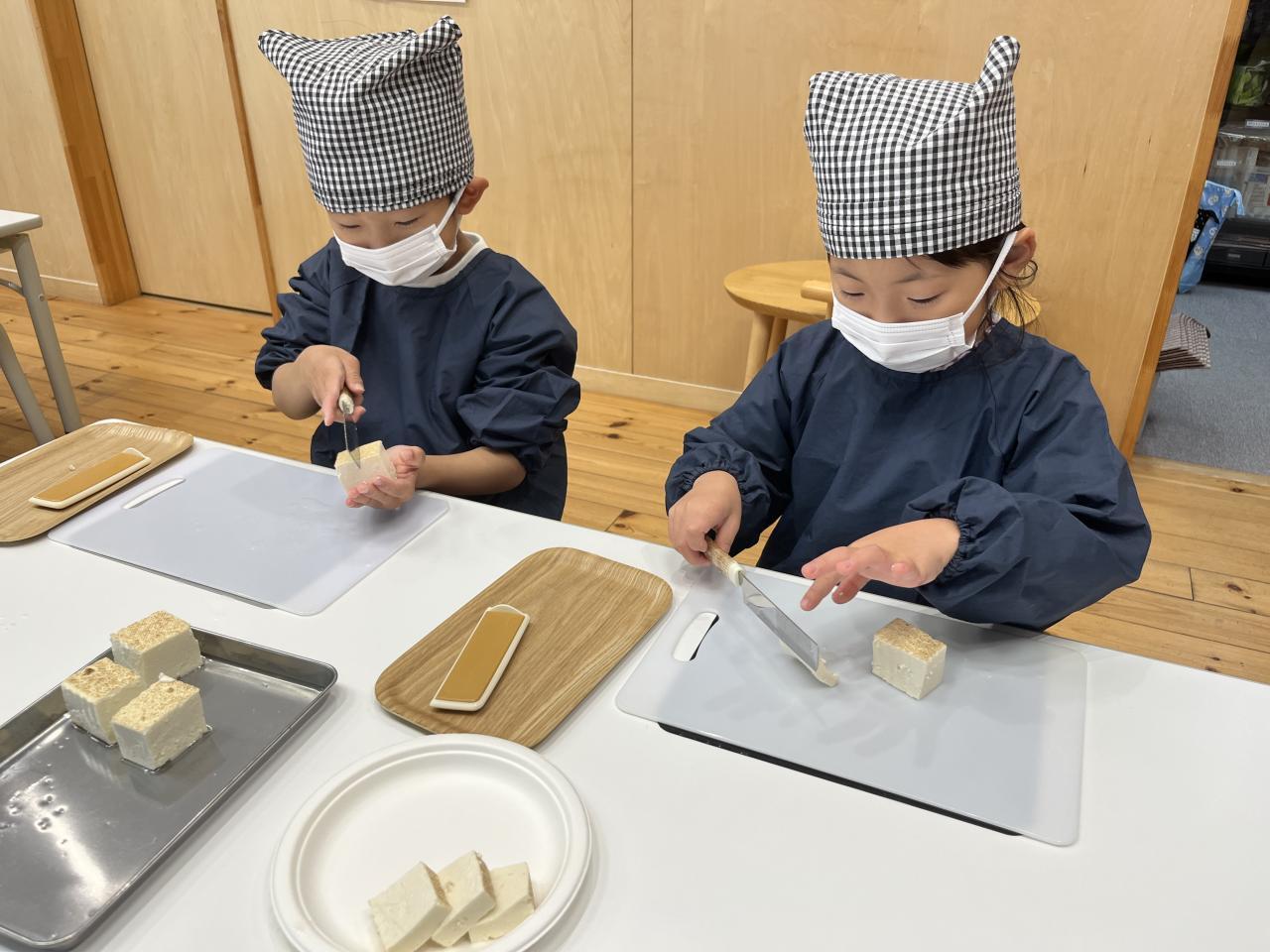 と、切る時の感触の違いに気が付いたり、大きさを考えながら切ったりしていました✨