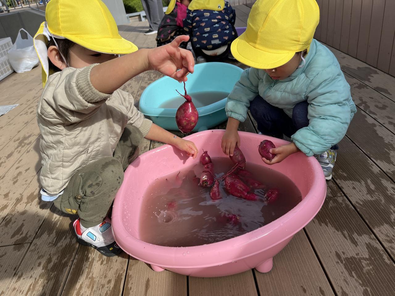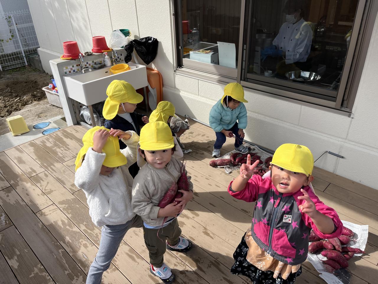 紫さん(5歳児)がいもほりで掘ってきた さつまいもに