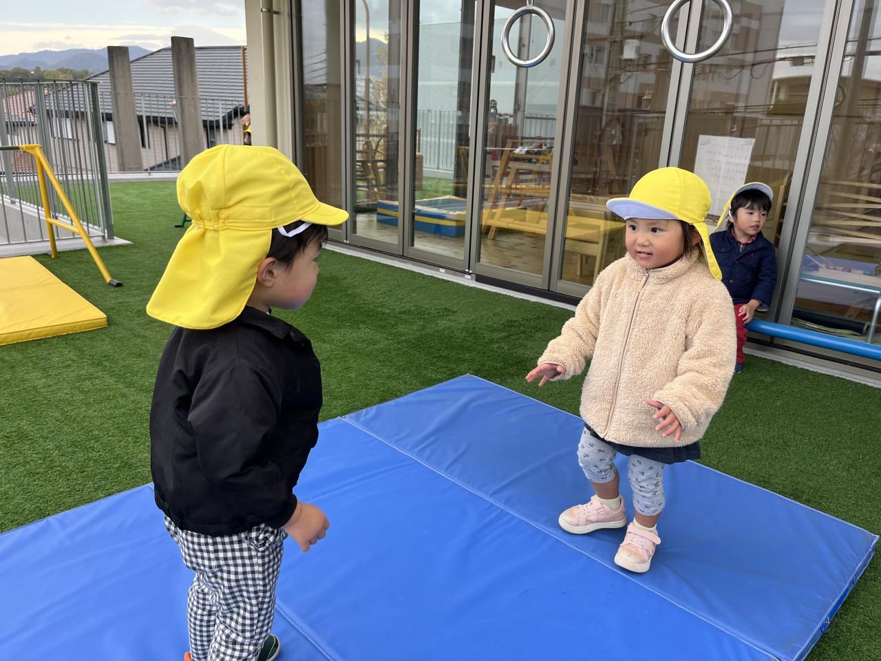 1階、2階園庭に遊びに行くと、実際に挑戦してみる姿が見られましたよ✨