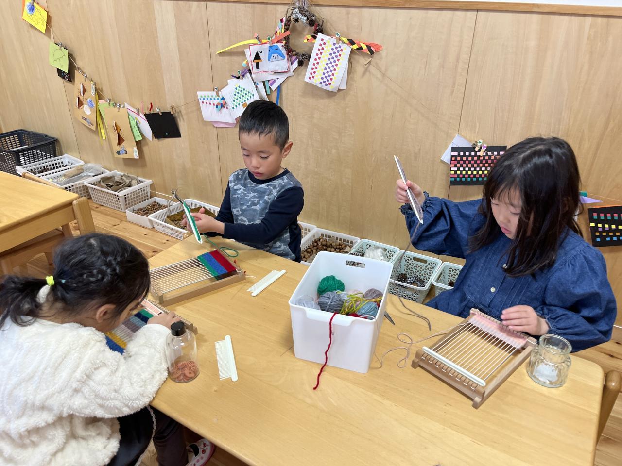 機織りや紙織りバックにも集中して取り組む姿が見られます。