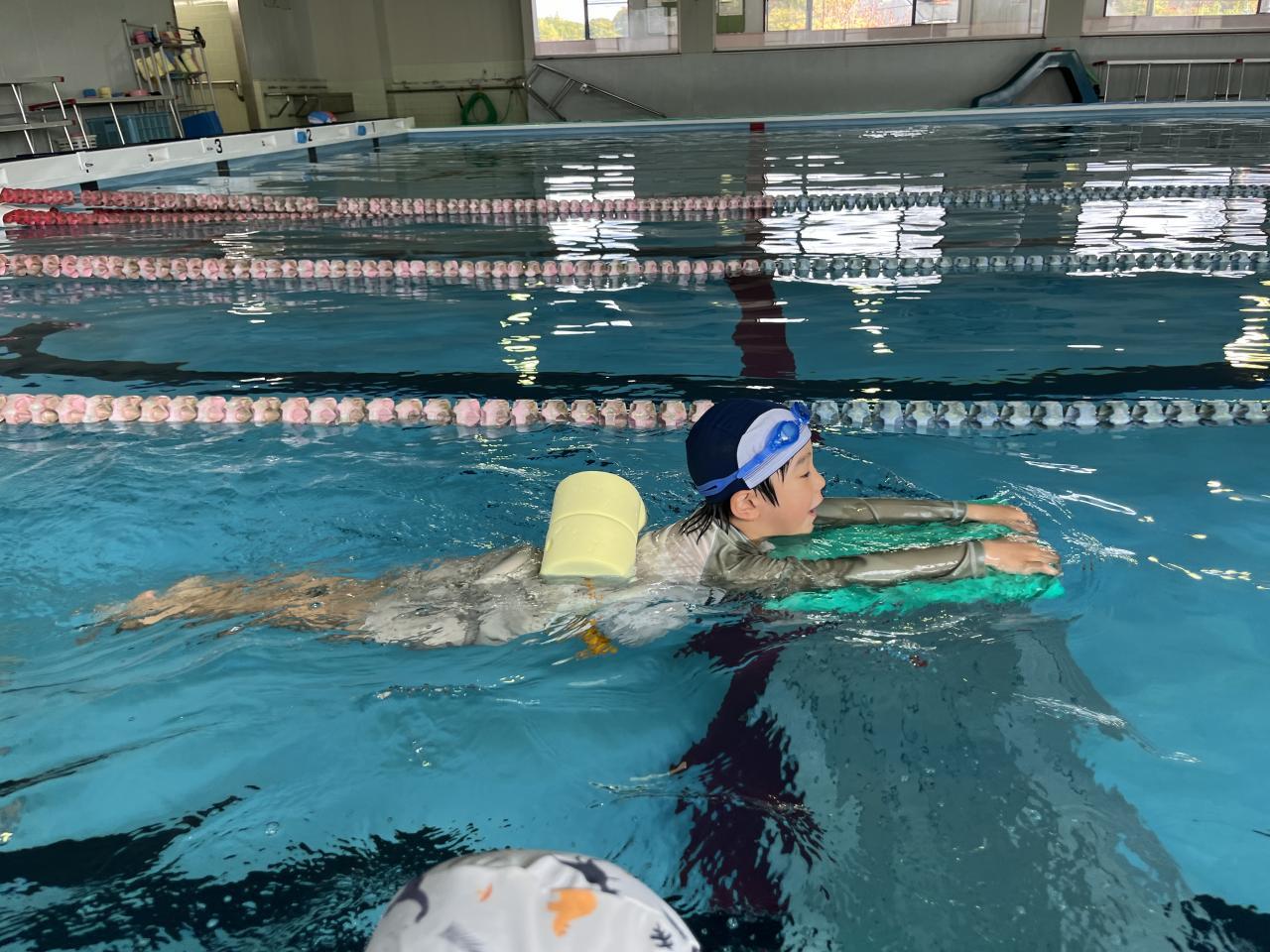 水泳教室では、顔をつけられる時間が長くなったり、けのびで進める距離が伸びたりし、