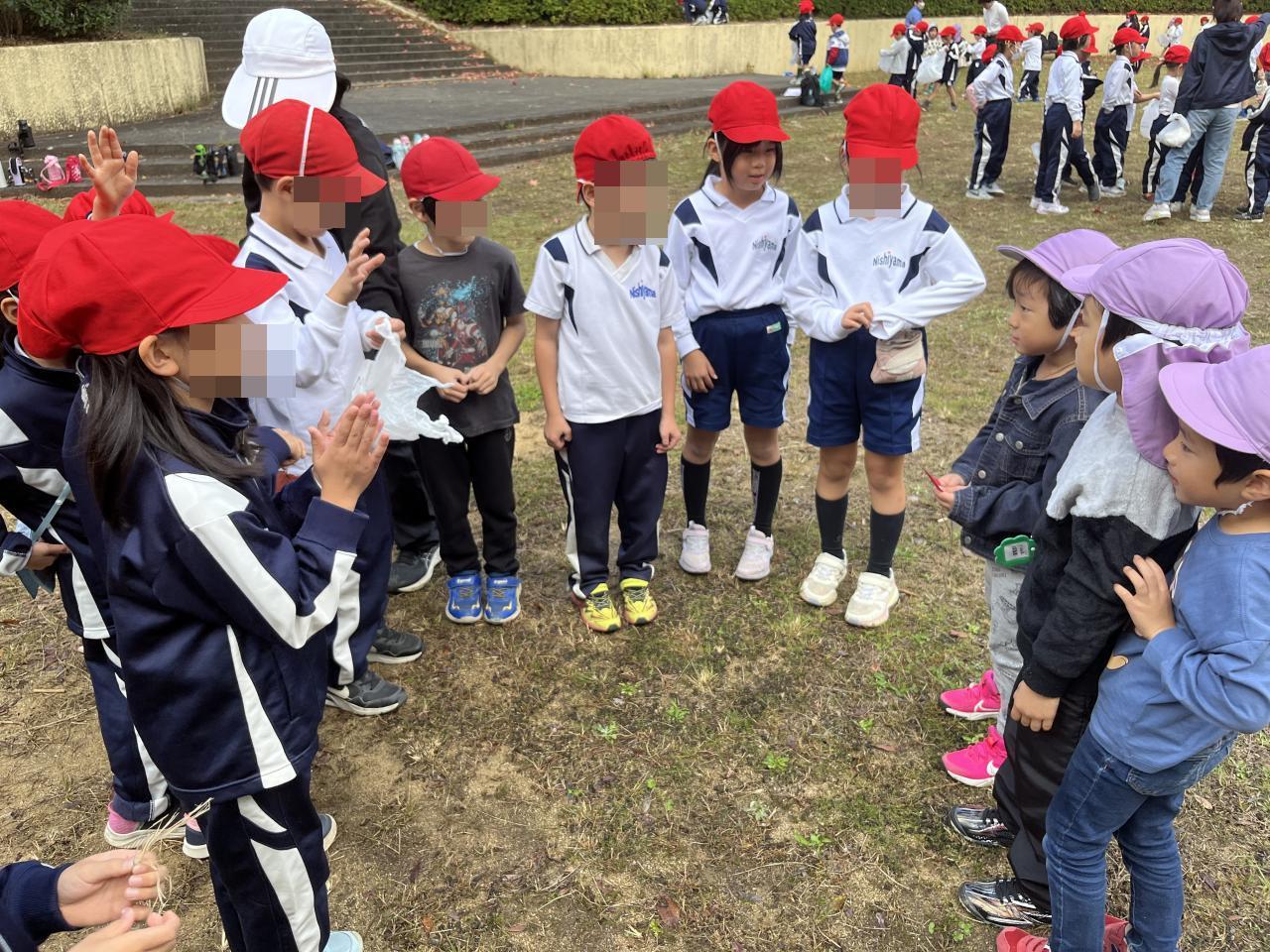 1年生から声をかけてくれ、一緒に落ち葉を探し、少しずつ打ち解けていました😌